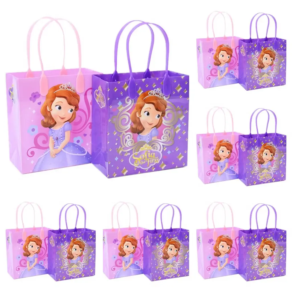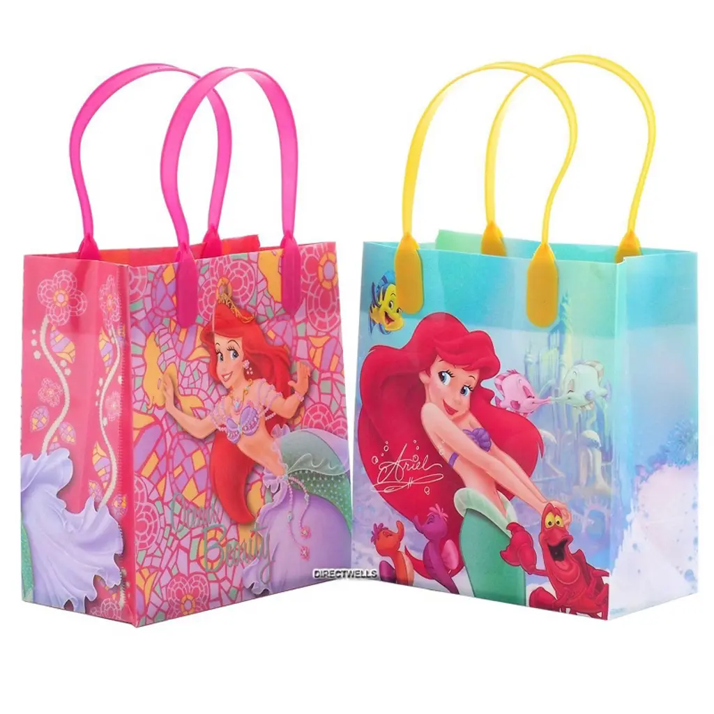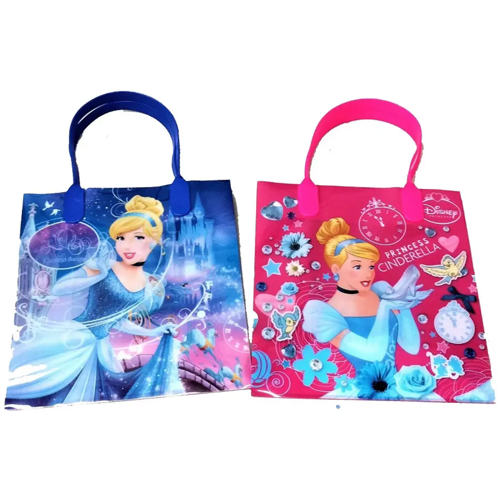 This is good quality official licensed Disney CINDERELLA plastic goody gift bags.There are 1-4 designs in 1 pack for 12 bags.It's reusable bags.The bags are sturdy. You are buying 12 bags of Disney CINDERELLA Goodie Bags The size approximately 6.5" x 6.25" x 3.0".
