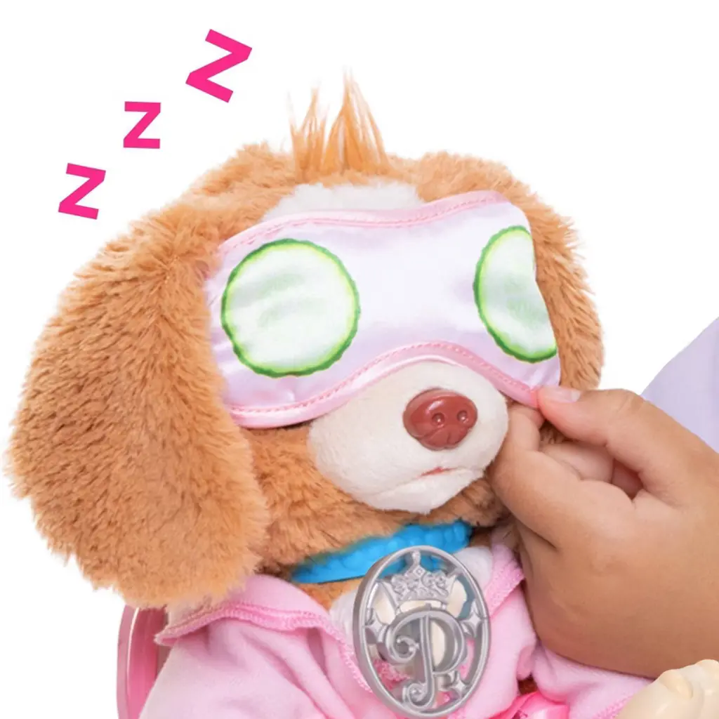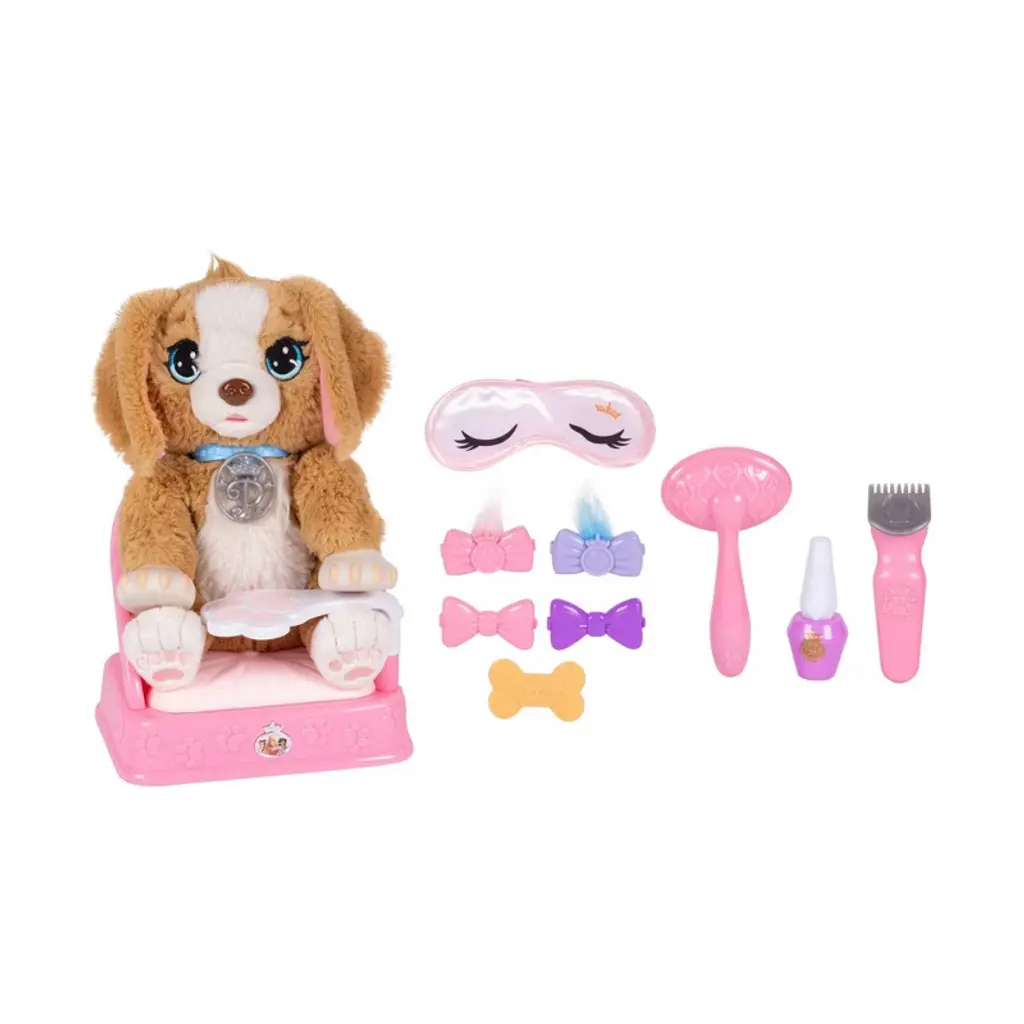 Inspired by the adorable, viral pet grooming videos trending on social media, treat your Disney Princess Style Collection My Pampered Pup to the ultimate at-home play spa experience. Create the perfect “spa-w” day with the included accessories and pamper your pup like never before! Place your pup in the spa chair for a luxurious paw-dicure. Dip the play “nail polish” brush in icy cold water to activate the color change nails & watch as the puppy’s nails transform color! Bring your plush pup to life with realistic sounds (cheerful barks, happy coos, gentle snores & more) activated by pressing puppy’s left front leg. When it’s time for a groom, wrap your “fur-ever” friend in a luxurious robe and settle them in the comfy spa chair. Help your pup relax with a silky eye mask – pretend to chill out with cooling cucumbers or flip it over to take a cozy nap! Then brush & style your doggie’s fur, and finish spa day with a well-deserved puppy treat. Snuggle up with your My Pampered Pup at the end of the day!