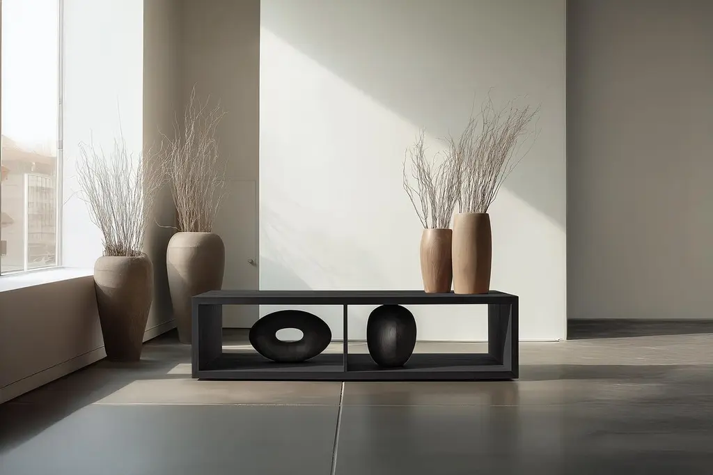 Display Console in Solid Wood, Sereno No26 Contemporary by NONOSereno CollectionDesign by Joel Escalona for NONOWhen practicality becomes art, the result is the Sereno Collection by Joel Escalona for NONO. This collection redefines tranquility through exquisite credenzas and sideboards that stand alone in their beauty, embodying a serene simplicity that everyone can feel.The Sereno Collection celebrates minimalism with pieces that don’t need additional decoration to make a statement. Each credenza and sideboard is adorned with unique wooden sculptures, reminiscent of a tranquil pebble, thoughtfully placed to enhance its elegance. These pieces are crafted from solid wood, adding character to each design. Standard models use red oak, but customization with various woods and finishes like walnut, teak, and burnt oak is available to perfectly suit your style and space.Founded in 2011 by Joel Escalona, NONO has over a decade of experience producing high-quality interior furnishings. Joel’s work transcends categorization, blending creativity, productivity, and introspection. His multifaceted approach, encompassing drawing and sculpture, infuses his designs with lyricism, humor, and poetry.NONO's philosophy centers on transforming everyday beauty into extraordinary art forms, seamlessly blending functionality and aesthetics. Each Sereno credenza and sideboard exemplifies this philosophy, offering both beauty and practicality. When you choose a piece from the Sereno Collection, you’re not just acquiring furniture; you’re bringing a piece of art into your home.Each piece in the Sereno Collection makes you feel serene and tranquil, embodying a minimalist elegance that doesn’t require additional ornamentation. The beauty of these designs is that they are complete in themselves. You don't need to add anything else to the compartments or surfaces; they stand alone, transforming any living room or interior project with their quiet sophistication.Experience the serene elegance of the Sereno Collection by Joel Escalona for NONO, where every piece speaks softly yet powerfully, transforming your space with its quiet beauty.———Some details to consider when placing an order with us:• Catalog images are digitally generated. Actual products may slightly vary in texture, grain, and final finish due to natural material differences. Despite these variations, our expertise ensures each piece maintains high quality and matches the intended design.• All of our products are made to order, and the lead time for standard products is estimated to be 9 to 12 weeks, plus shipping time. However, special pieces or sculptures may require a longer lead time.• We offer customization in dimensions and finish for all of our furniture pieces, which may result in additional charges.• We only facilitate freight services by a third party. The client is solely responsible for any associated import/export taxes, as well as any necessary customs paperwork.• We are not responsible for any damages that may occur during shipping or for any customs-related delays.