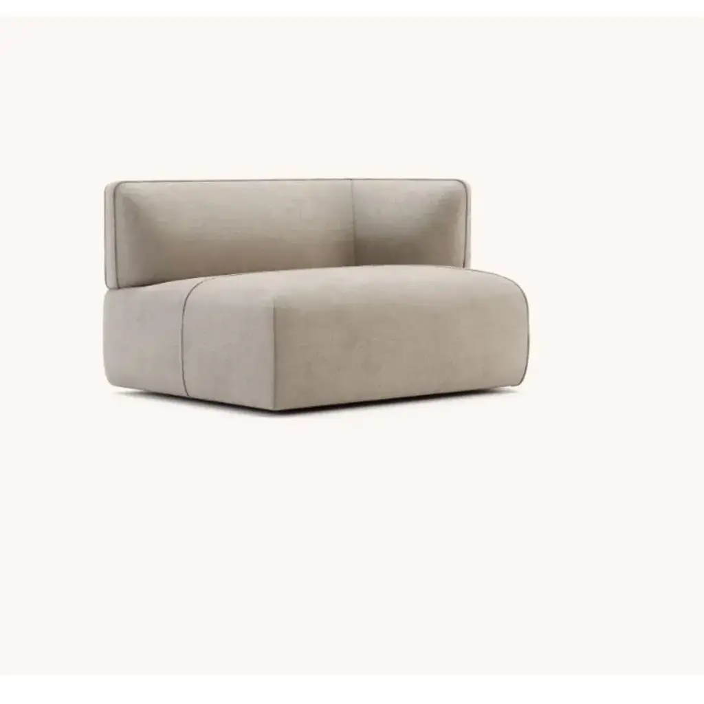 Disruption Module with Armrest Right / Left by Domkapa Materials: Velvet (Aldan 2928). Dimensions: W 144.5 x D 100 x H 80 cm. Also available in different materials. Please contact us. Disruption is a modular sofa, fully upholstered, with minimalistic design and ergonomic proportions. This system includes settees in various sizes, from pouf to chaise longue, that can be combined to create different solutions. The seat is a high cushion and armrests can also be added by choosing the armchair version. Curvy and sophisticated, Disruption sofa creates cozy interiors with seductive lines. Domkapa holds a tremendous passion for detailed stitching, presenting several similarities to the haute-couture philosophy focused on the value of a “made by hand”. Based in Portugal, Domkapa was founded in 2009 as a Private Label. The long and fruitful path, full of experience and achievements inspired the brand’s new identity and independence, in 2017. Domkapa challenges its team to create the perfect daily meeting between design and comfort in each piece of the brand’s collections. Our design team works side by side with the production, and this organic synergy allows the creation of innovative designs.