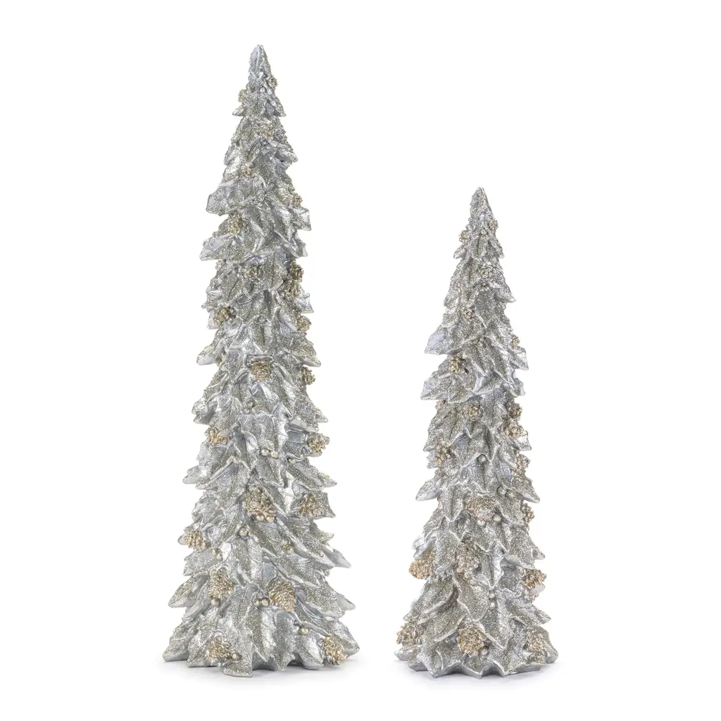 Add a natural elemant to your winter décor with this stunning set of Metal Pine Trees. Featuring three assorted sizes, this set is a great fit for your rustic woodland or lodge cabin style of holiday décor. The white washed finish with chic gold accents is the perfect combination to create a memorable display. The quality metal composition is sure to endure for seasons to come. Display the pieces on your mantle or bookshelf to make a statement, or gift them to someone special to spread the holiday cheer.