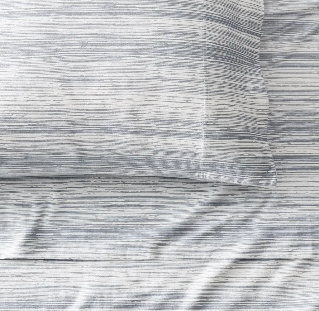 Like the much-loved T-shirt that really has a hold on you, our hypnotic bedding is sewn from cozy jersey and printed with an arresting array of variegated stripes.