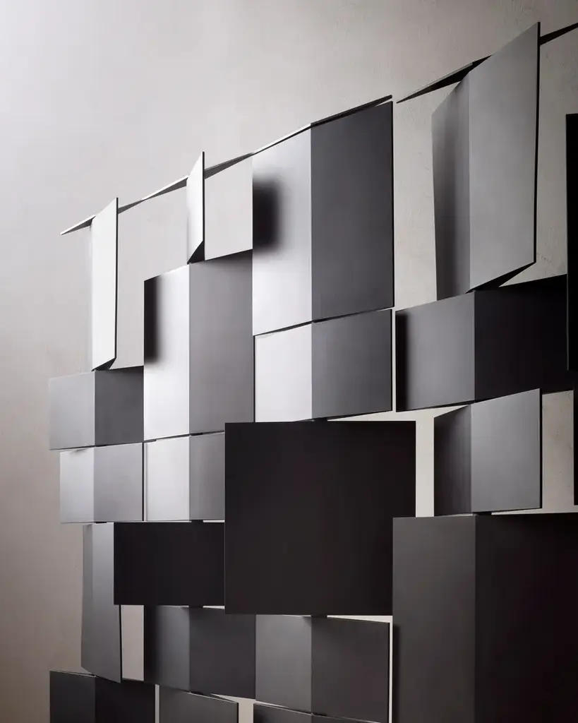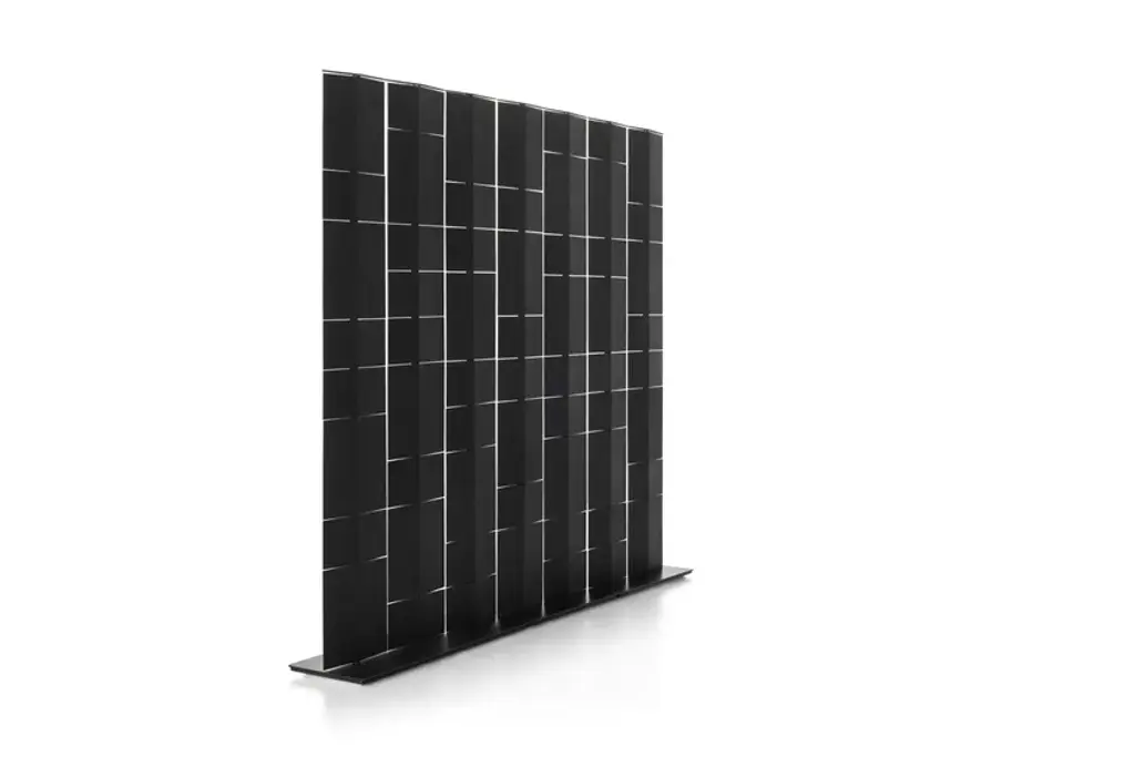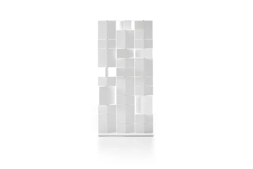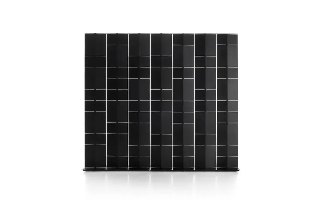 Divide IT was created to meet these needs: it is a dynamic product that adapts to every requirement and allows you to divide the work spaces and the home environment, to define unconstrained scenarios between work area and living, between semi-private and public areas; nowadays a precise, formal and traditional definition of the space is no longer relevant.The user can determine and control the passage of light and sound with his own hands, rotating each panel on an axis at 360 degrees. This rotation allows for neverending possibilities of partition, transition and diffusion.Divide IT invites the user to interact with it, as if it was a “toy” able to give fun and even a smile.StructureLoad-bearing structure in aluminium sheet, bonded with metal anti-tilt weight, spherical steel castors (upon request) for easy 360° movement, uprights in steel, Ø 20 mm, with brake, and upper crosspiece in aluminium.The entire structure is finished in matt white or black epoxy powder coating.The swivel panels can be rotated by 360°.Made in integral polyurethane painted in the mould, they come in two sizes, in the colours matt white and black, and are arranged in an alternated, defined geometric sequence. Dimensions and typesEach divider element is available in two different sizes, W90 and W60, (see sample compositions), which can be arranged or placed to form attractive large-sized configurations.Divide IT is always monochromatic and available in the following combinations:• matt white structure with matt white swivel panels;• matt black structure with matt black swivel panels.AccessoriesThe kit of castors is available only for hard floors (marbles, granite, terracotta, ceramics, gres, stone, concrete, et cetera).MaintenanceFor correct cleaning avoid alcohol-based products, use water and mild neutral soap. Rinse thoroughly after washing, only with water.