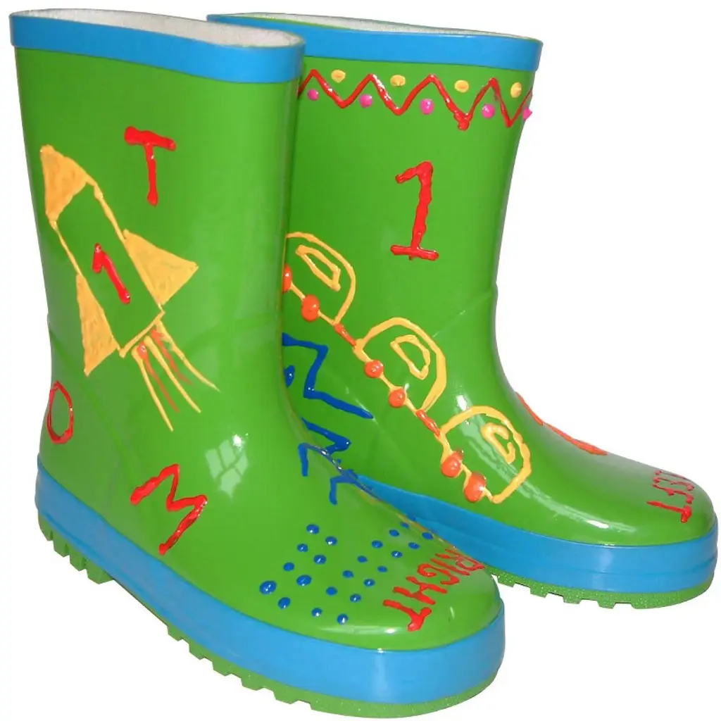 Unleash your creativity with these vibrant green rubber wellies, perfect for adding a personal touch! Use the included waterproof paint pens to design funny faces, fun pictures, groovy patterns, or even write messages and names. Whether you're adding a burst of color or crafting unique designs, these wellies are a blank canvas for your imagination.