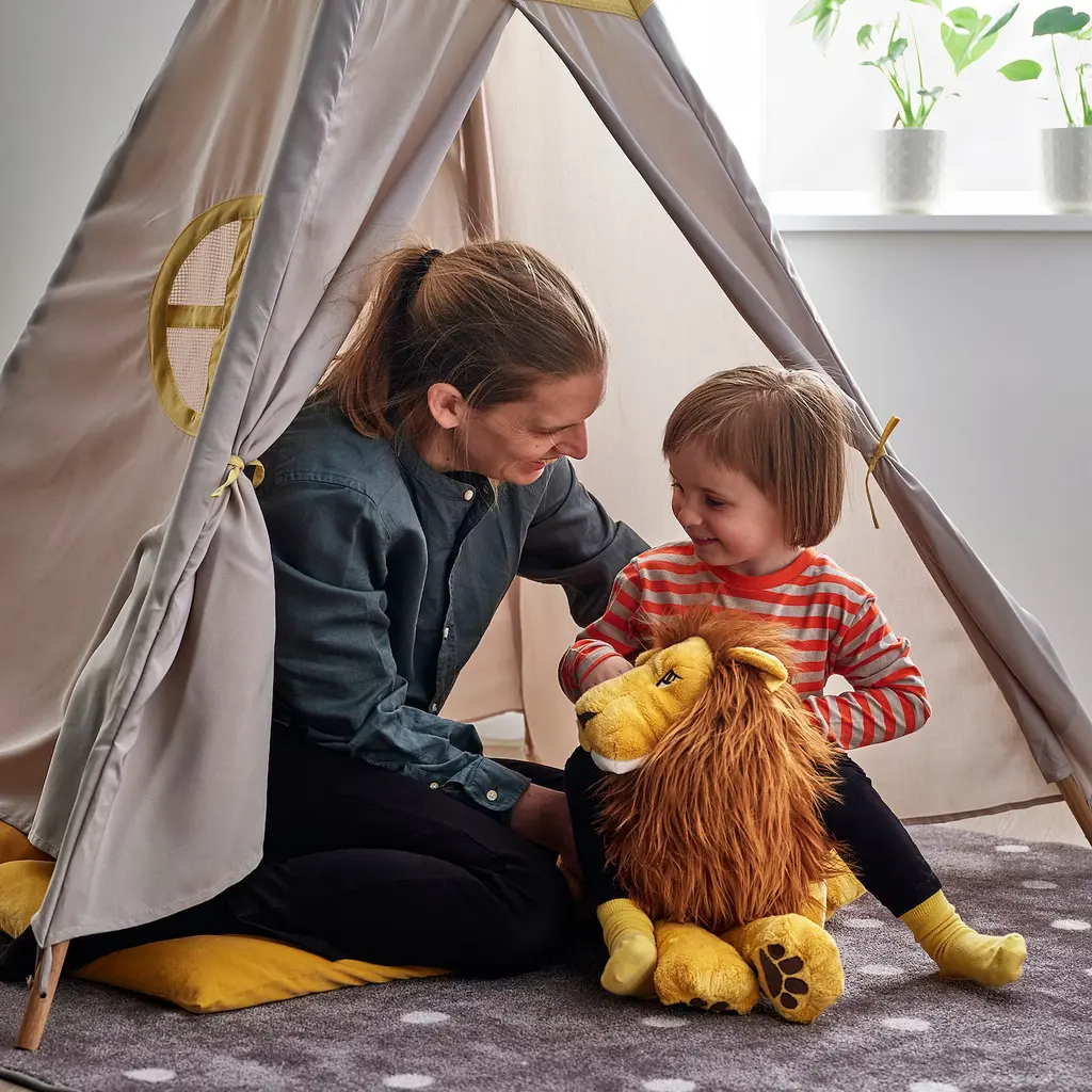 DJUNGELSKOG Soft toy - lion. The lion is called the king of animals and is a powerful cat with a big mane and golden fur. It prefers to live with others and would really like to be a part of your family. Recommended for children 18 months and older.