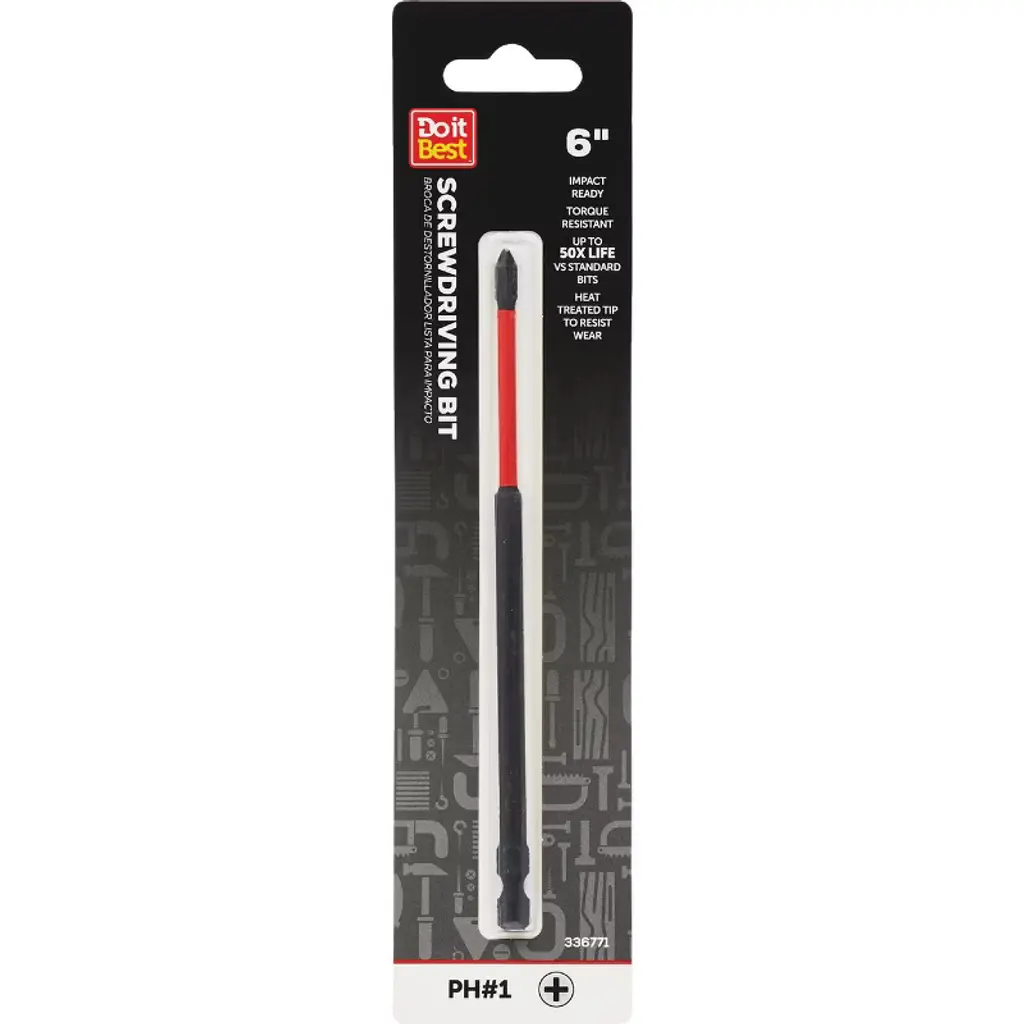 Power screwdriving bit is cryo-temp hardened for longer tip life. 1/4" hex shank fits all standard bit holders and hand-held drivers. ACR ribs on bit tip reduce cam-out. Special torsion zone reduces bit slippage and fracture. Precision formed tip for proper fit. Carded.