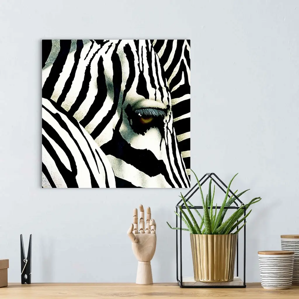 This is a very up close view of a zebra's head and eye with other parts of zebras shown in front of it's head and behind it.