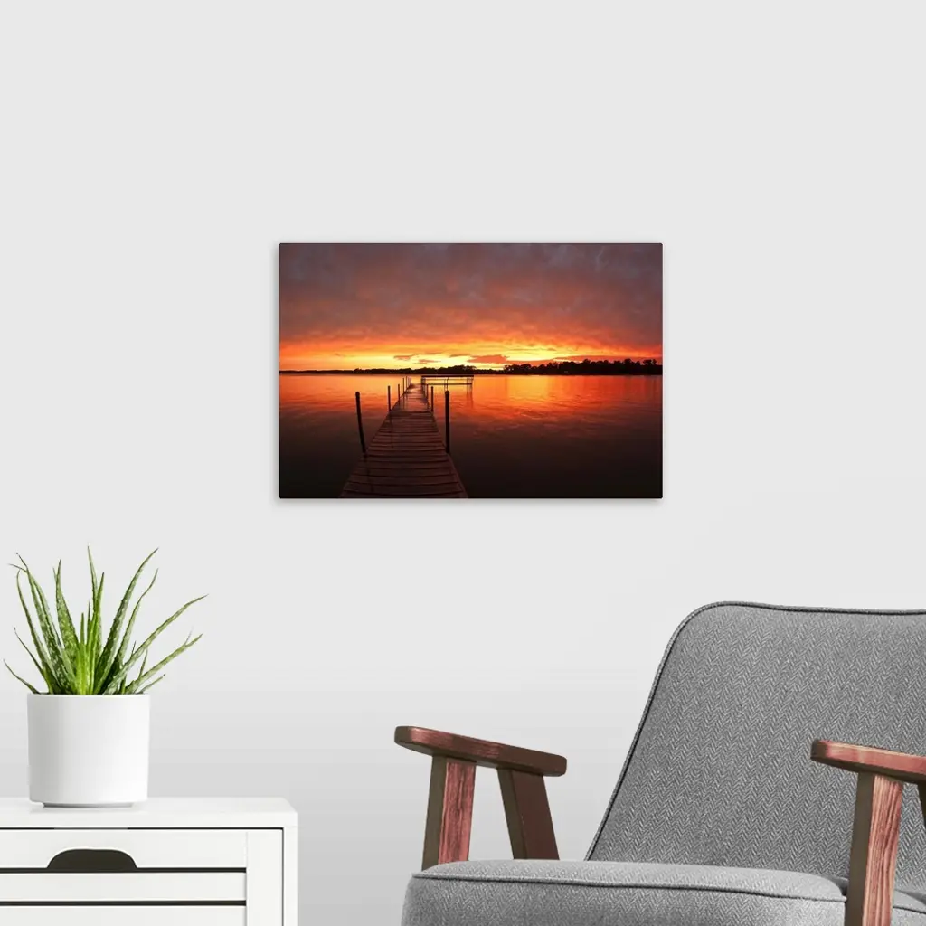 Dock At Sunset On Lake Minnetonka, Mn