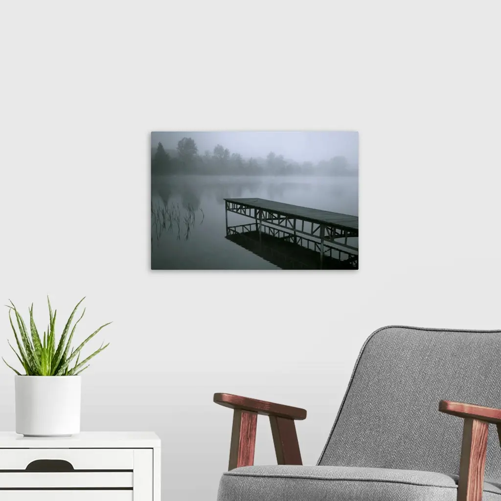 Dock With Fog Over Lake, Rekowo, Koszalin County, Poland wall art for home and office decor. Discover canvas art prints, photos, mural, big canvas art and framed wall art in GreatBigCanvas.com's varied collections.