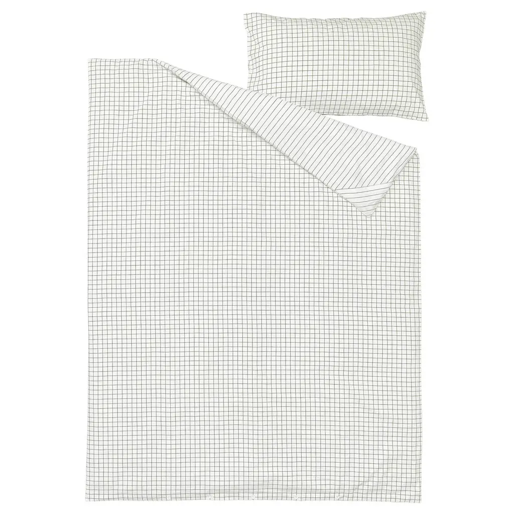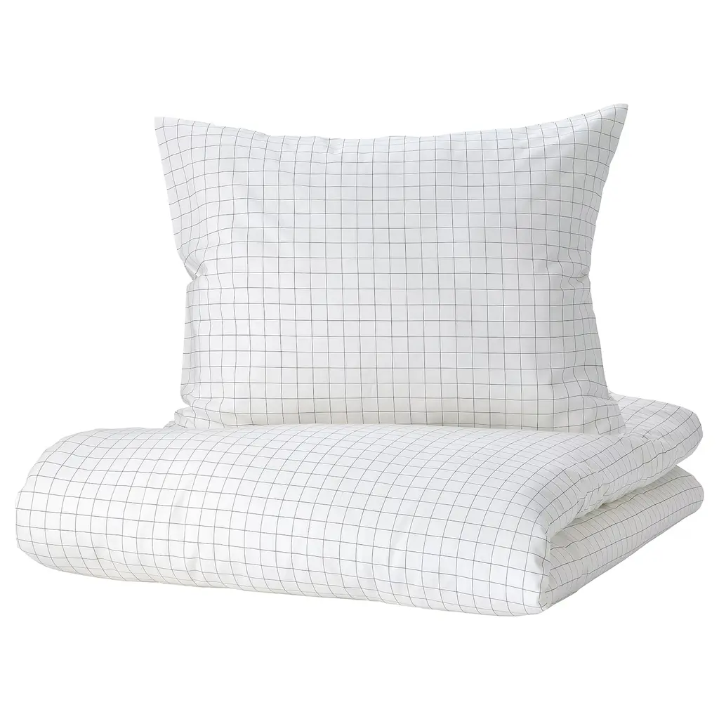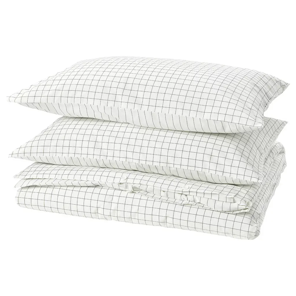 DOFTAKLEJA Duvet cover and pillowcase(s) - white/anthracite Twin. Made of 100% cotton - a natural and durable material that becomes softer with every wash. Cotton is a soft, natural material that breathes, absorbs moisture and feels comfortable against your skin. The buttons keep the duvet in place.