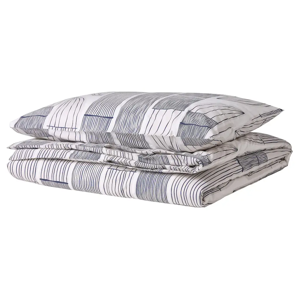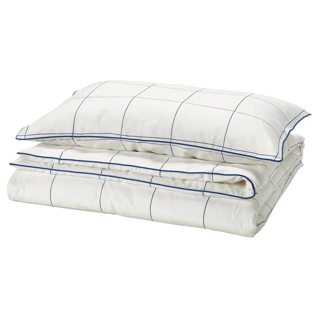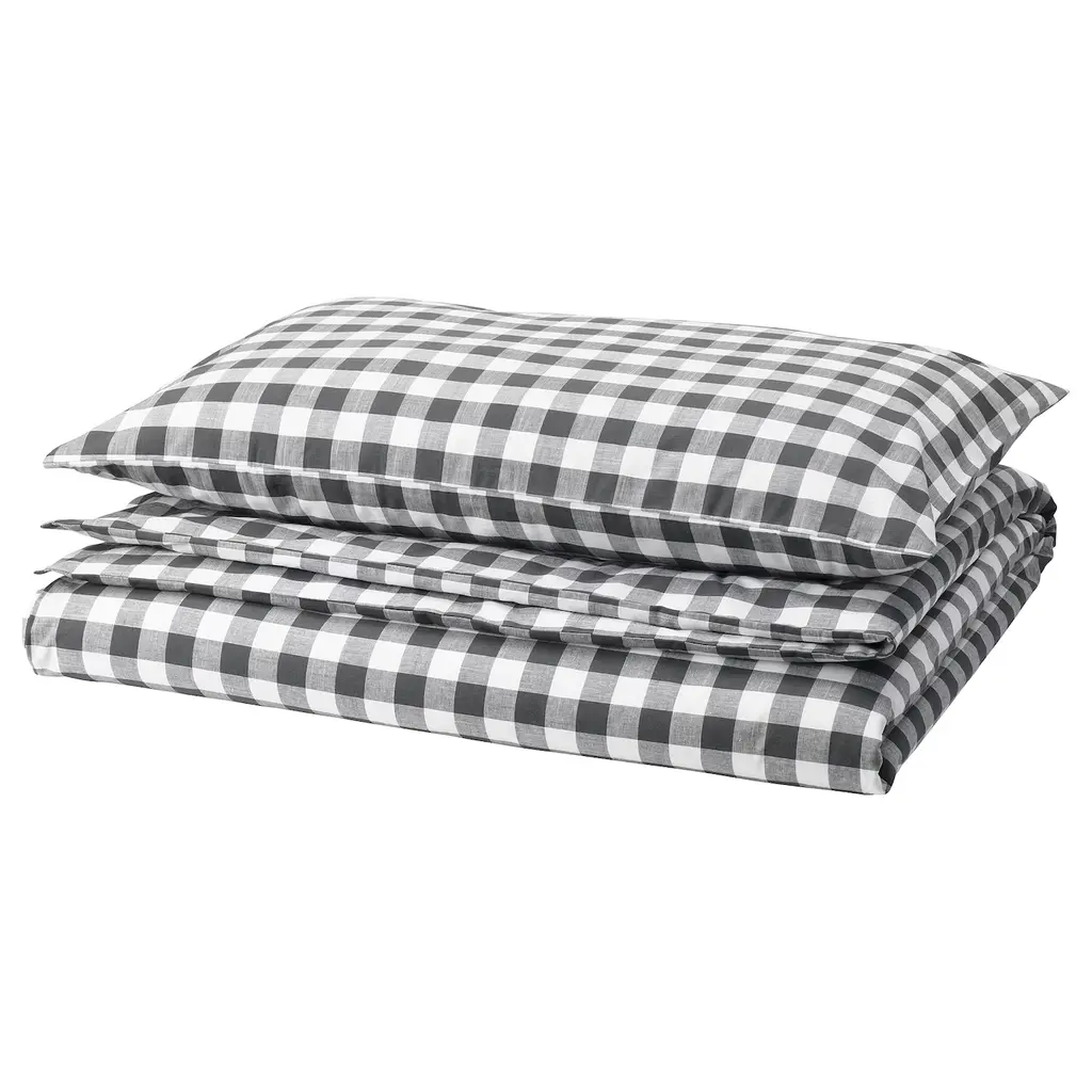 DOFTAKLEJA Duvet cover and pillowcase(s) - white/anthracite Twin. Made of 100% cotton - a natural and durable material that becomes softer with every wash. Cotton is a soft, natural material that breathes, absorbs moisture and feels comfortable against your skin. The buttons keep the duvet in place.