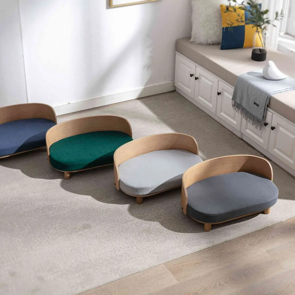 Dog Bed Pet Sofa With Solid Wood Legs And Bent Wood Back, Velvet Cushion - Green