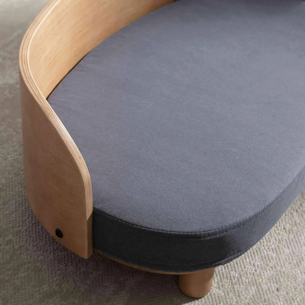 Dog Bed Pet Sofa With Solid Wood Legs And Bent Wood Back, Velvet Cushion - Grey
