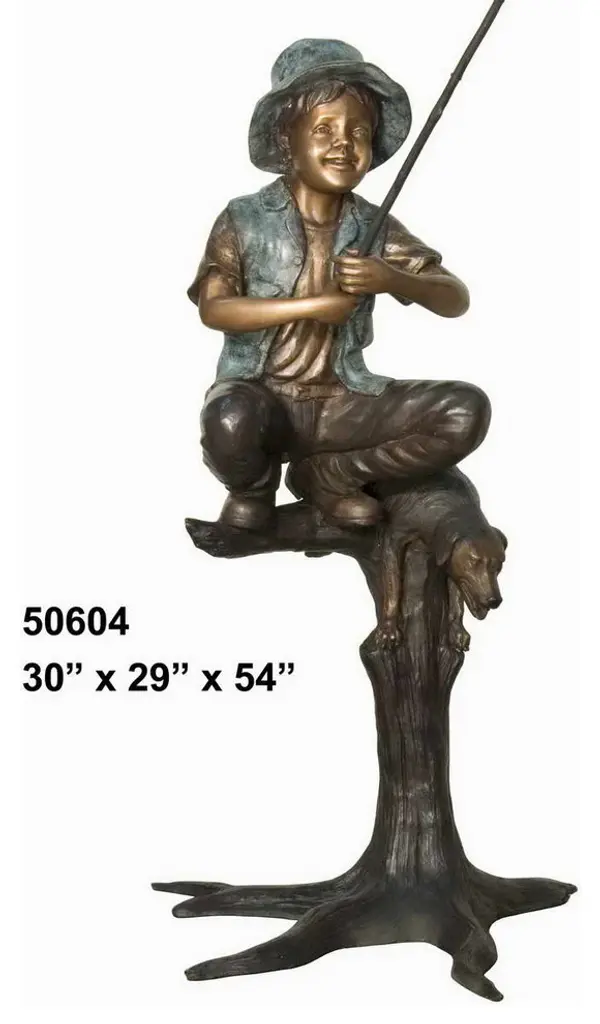 Reacting to his master, this cute dog is ready for one more round. Cast in bronze with highlights, this is a fun and whimsical way to enhance your decor or garden.