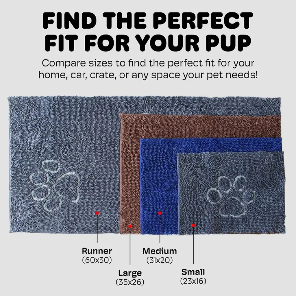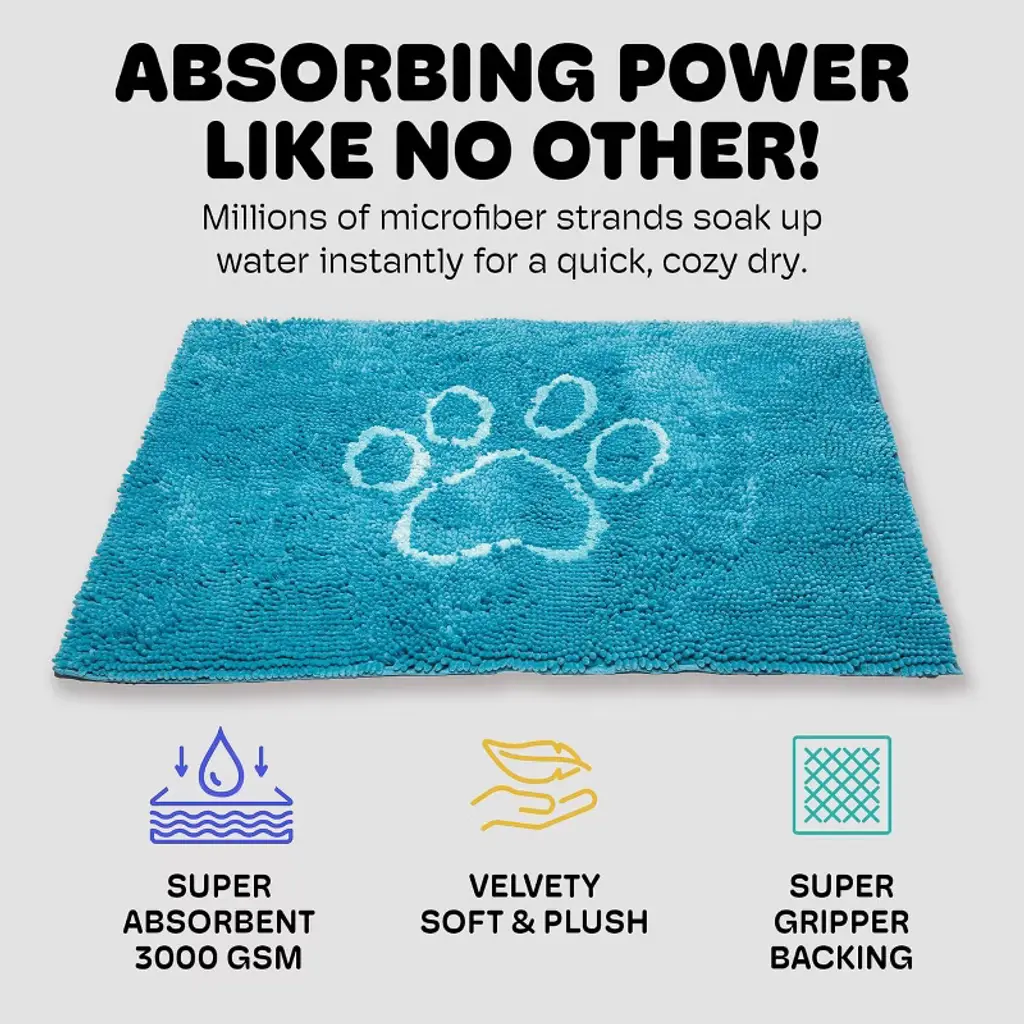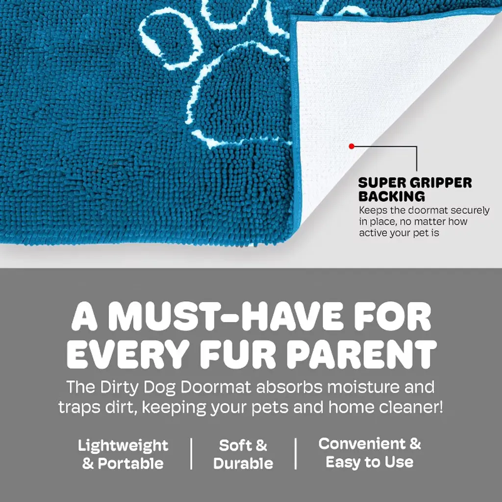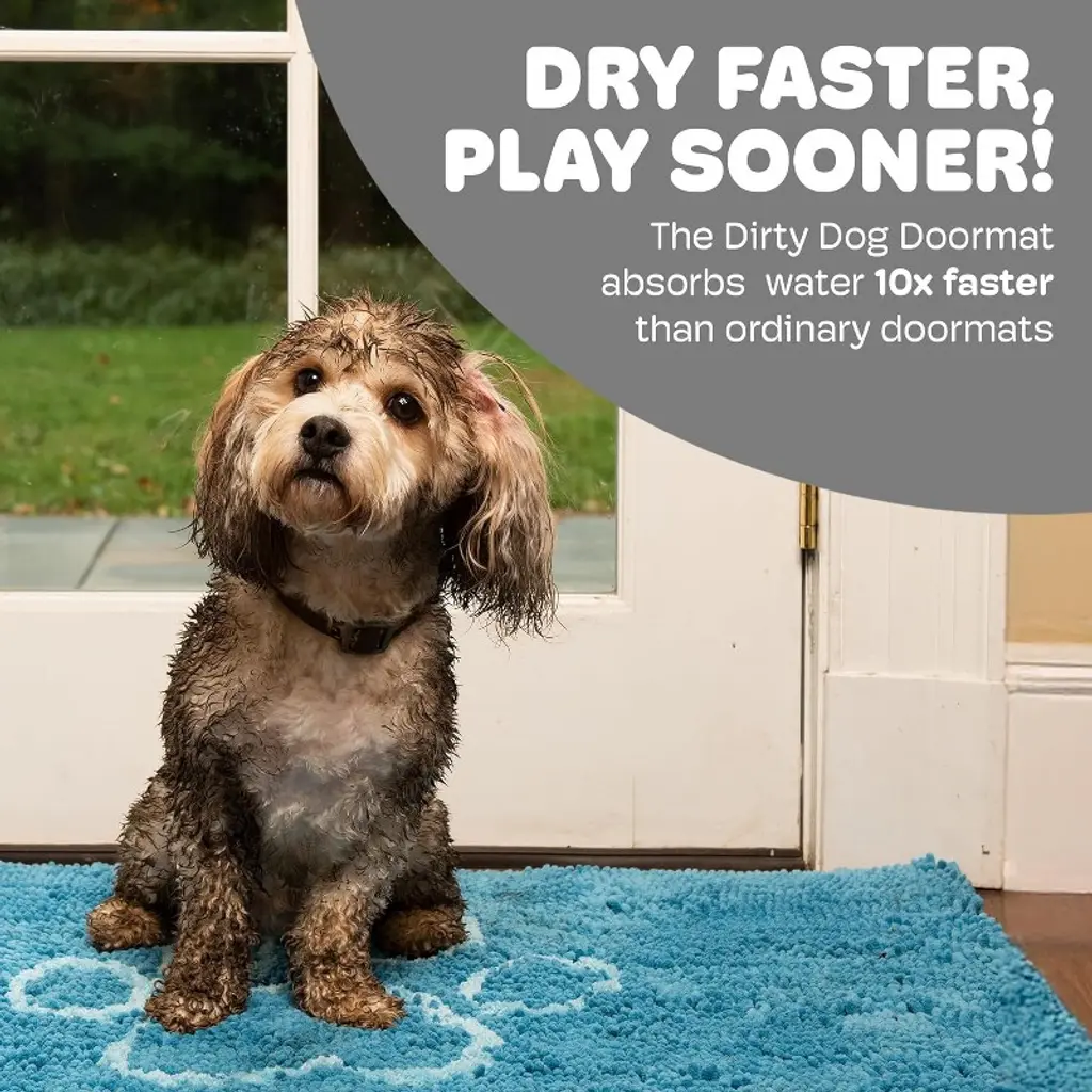 The Dirty Dog Doormat is a highly absorbent and versatile solution for keeping the floors of your home and car clean and dry. Featuring advanced microfiber technology with 50% more strands per inch, the dog floor mat measures 35 x 26 inches, soaks up to 7 times its weight in water or mud, and dries 5 times faster than ordinary mats. Its plush, velvety texture is gentle on paws, while the Super Gripper Backing ensures the pet door mat stays securely in place. Machine washable and durable, this mud and water absorbent door mat is suitable for use in cars, crates, under food bowls, after baths, or anywhere you need to trap dirt and water, offering unmatched convenience and performance