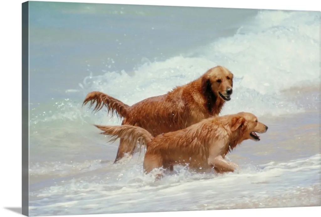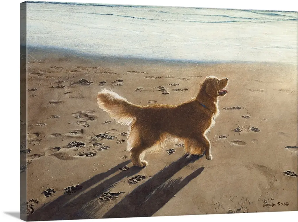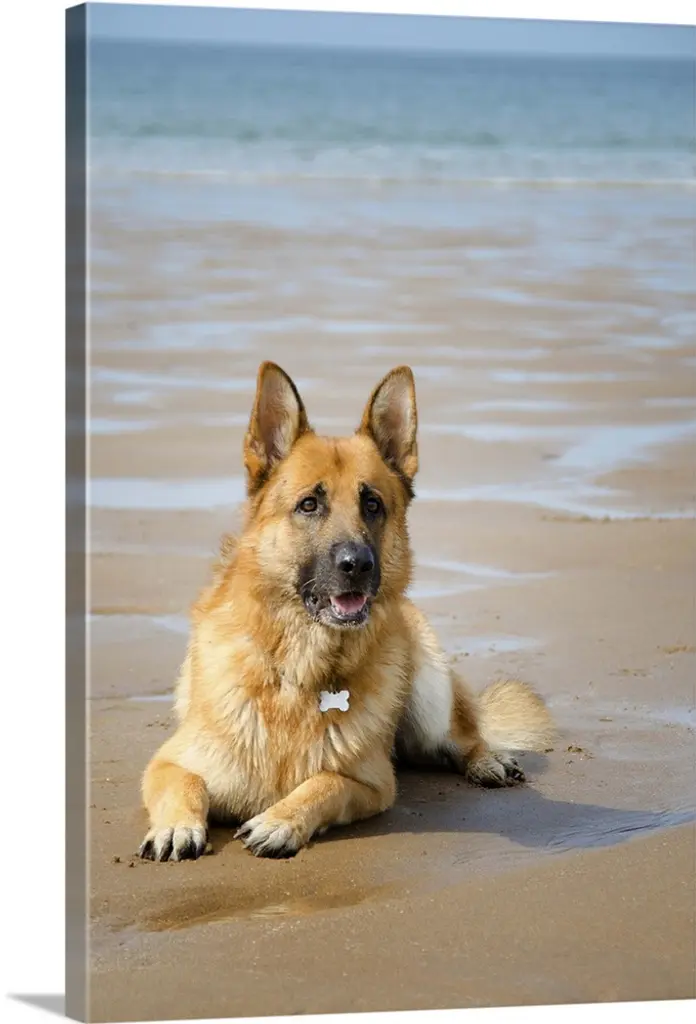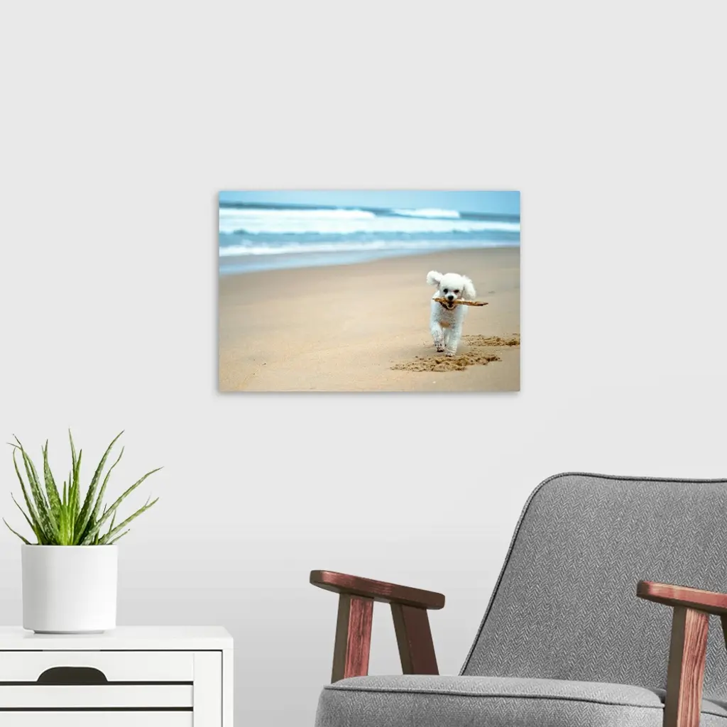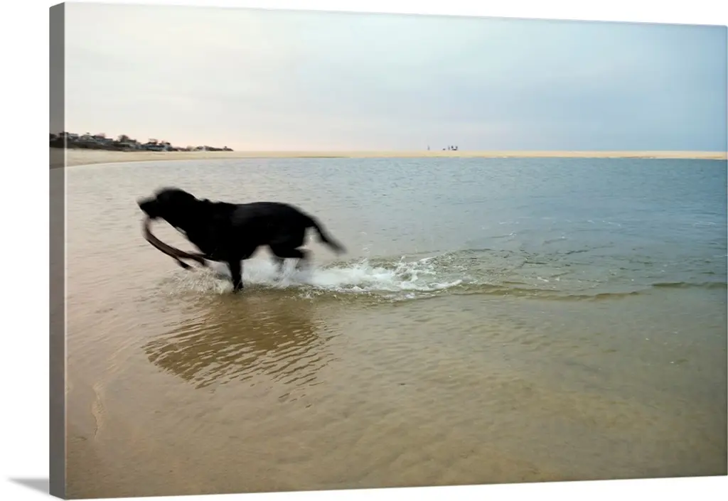 Dog playing on beach wall art for home and office decor. Discover canvas art prints, photos, mural, big canvas art and framed wall art in GreatBigCanvas.com's varied collections.