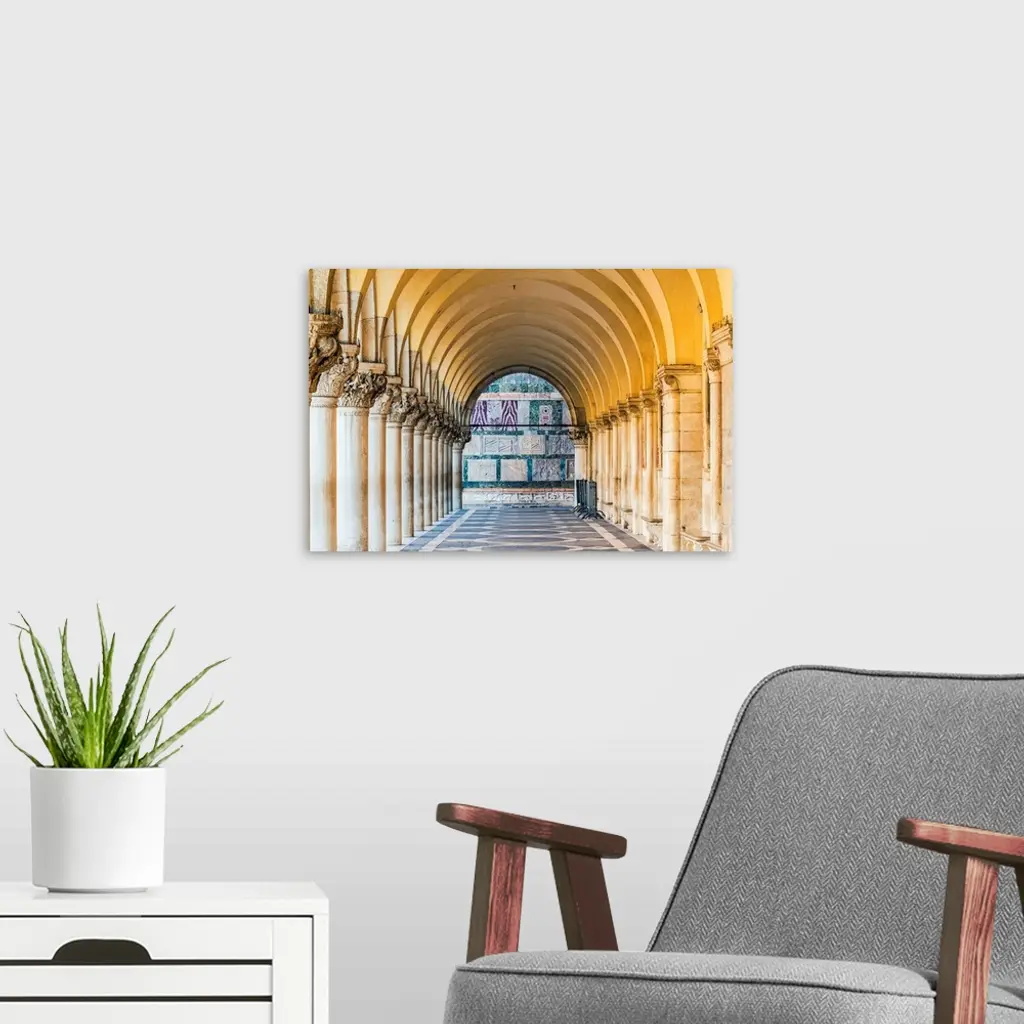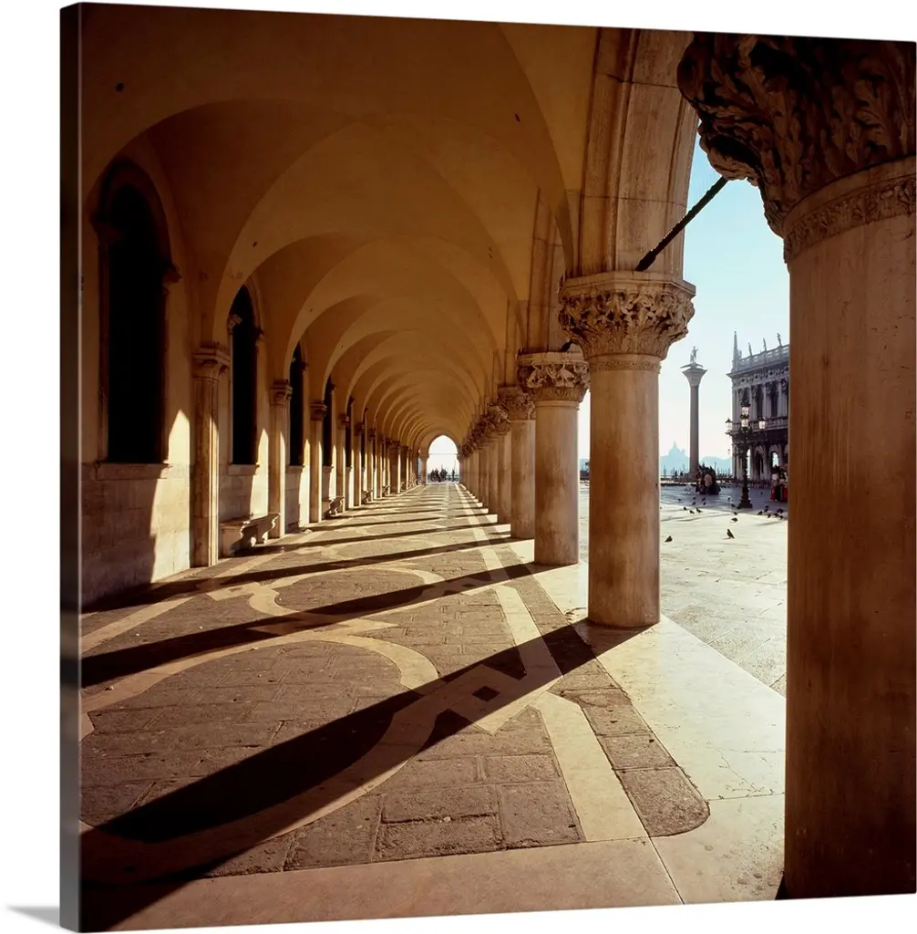 Doge's Palace Arcade, St Mark's Square, Venice, Veneto, Italy.