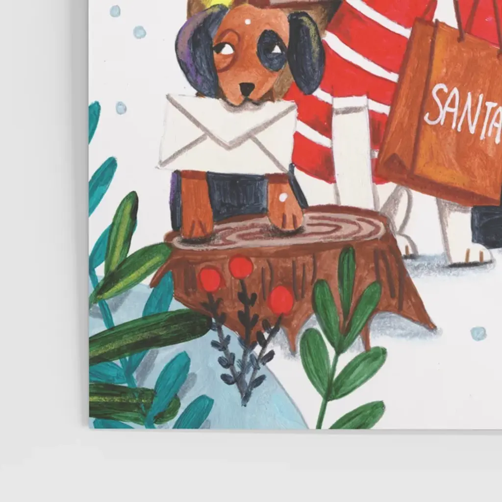 Dogs In The Snow Christmas Post Nordic Village Poster