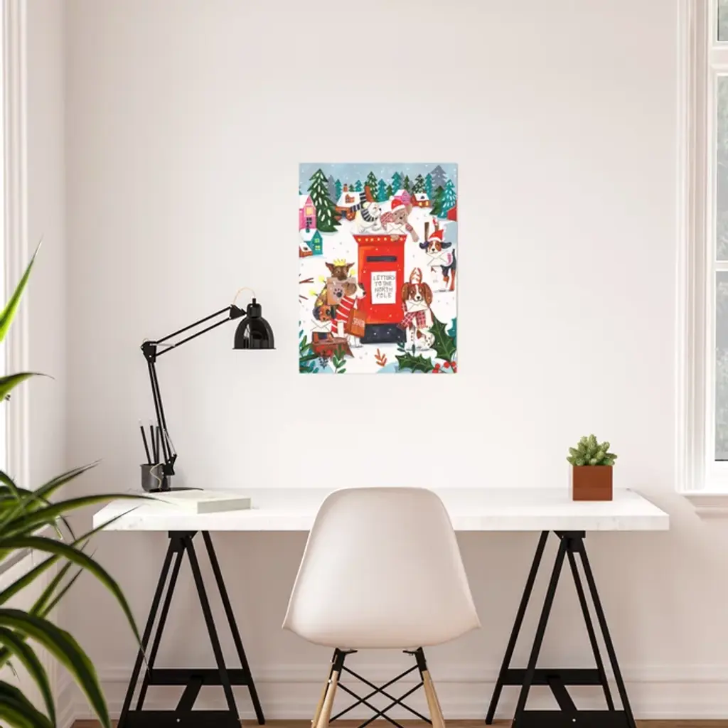 Dogs In The Snow Christmas Post Nordic Village Poster