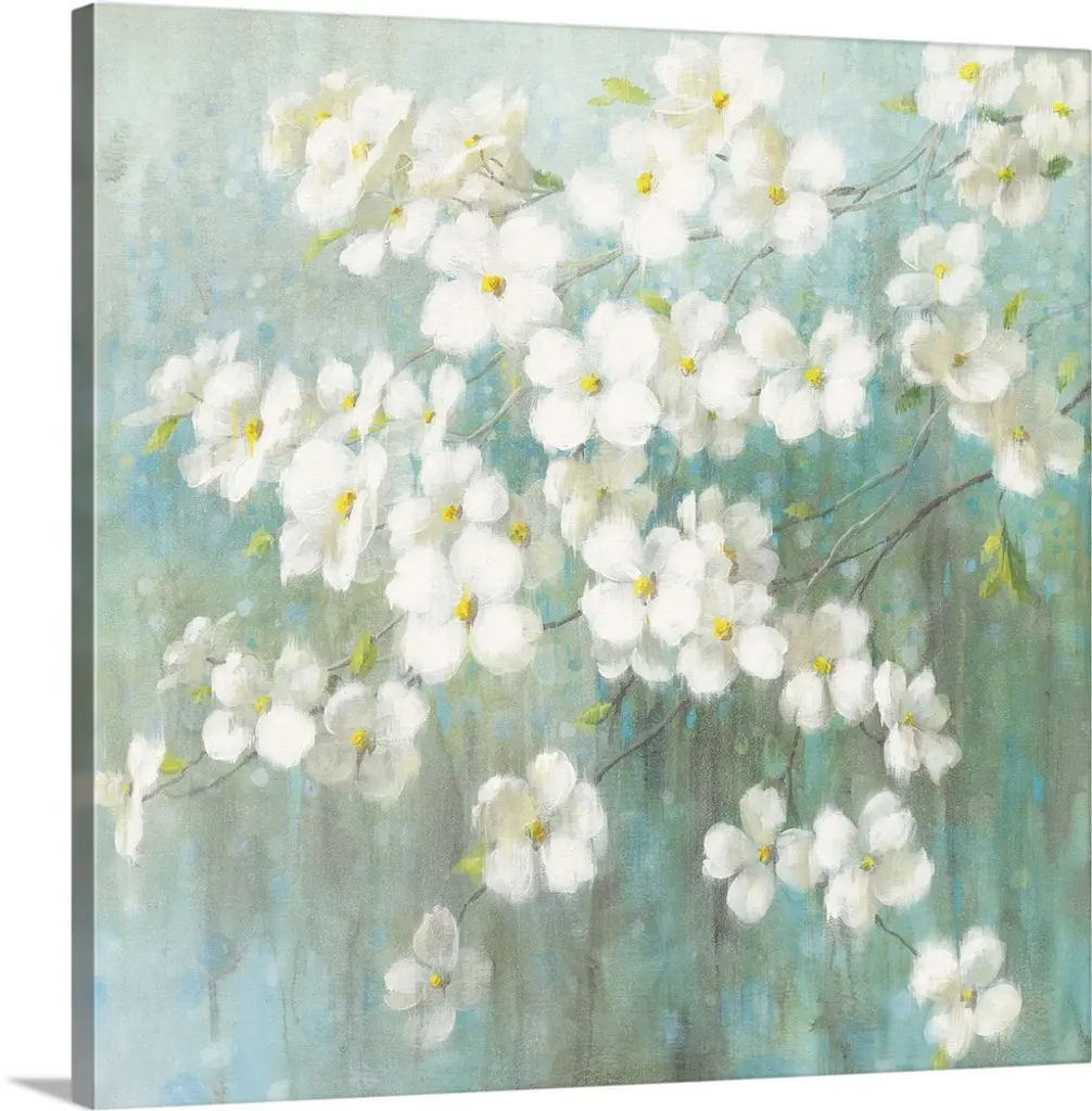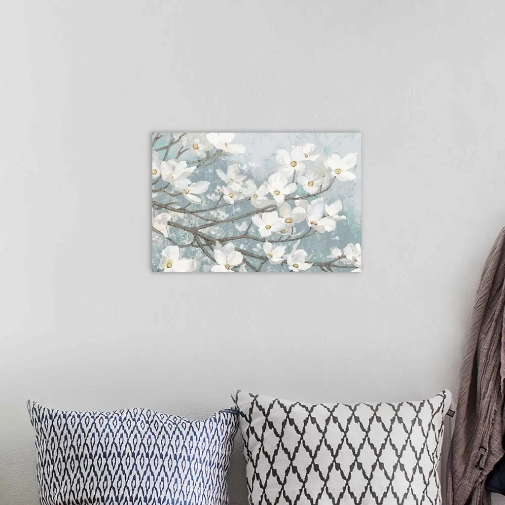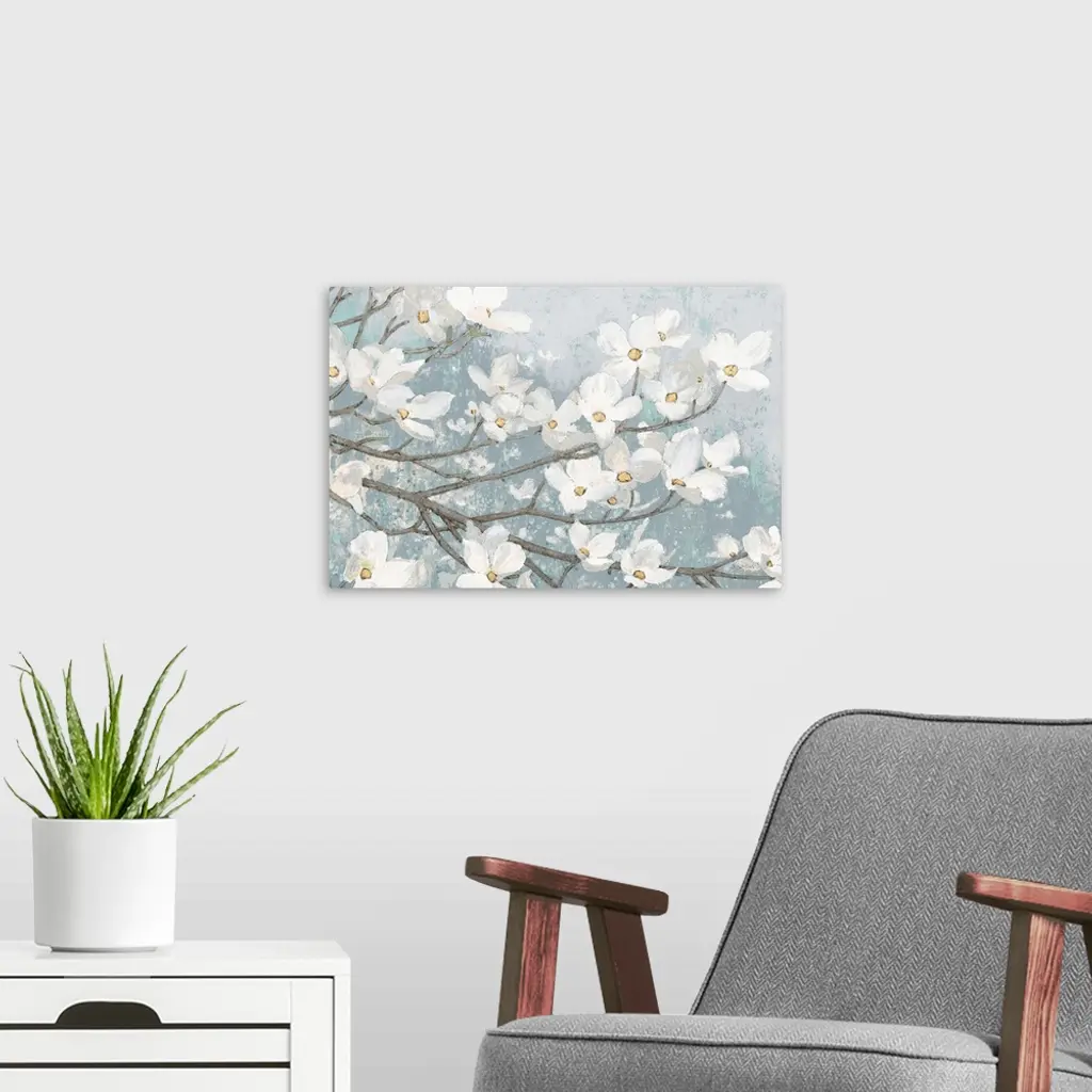 Dogwood Blossoms II Blue Gray Crop wall art for home and office decor. Discover canvas art prints, photos, mural, big canvas art and framed wall art in GreatBigCanvas.com's varied collections.