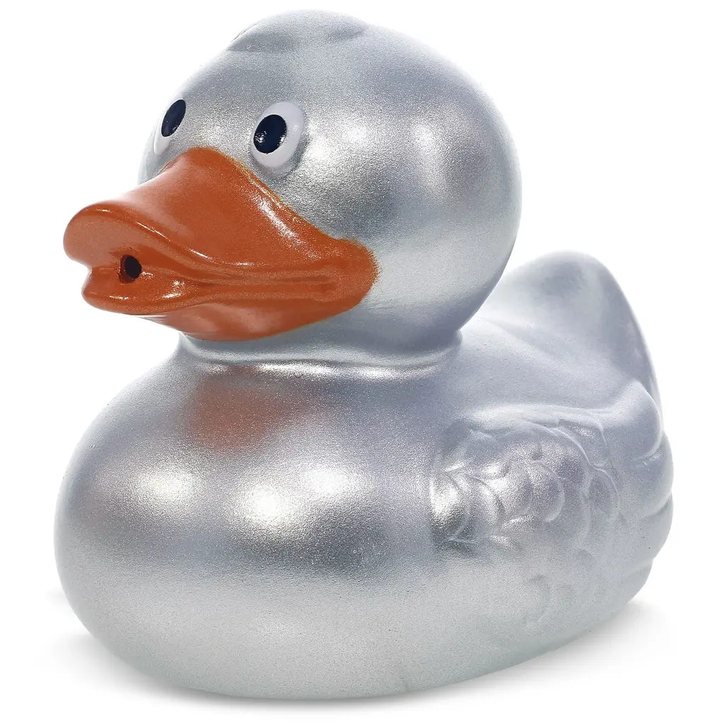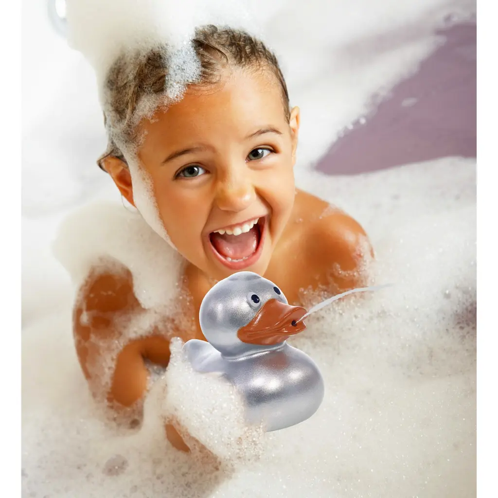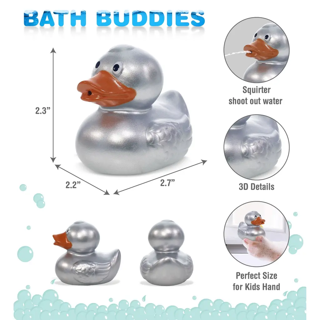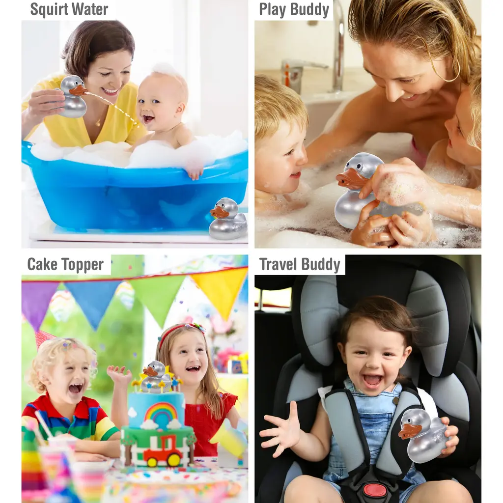 Dollibu Metallic Silver Duck Bath Buddy Squirter For Toddlers - 2.7lx2.2wx2.3h Inches - Silver - 2.7lx2.2wx2.3h Inches