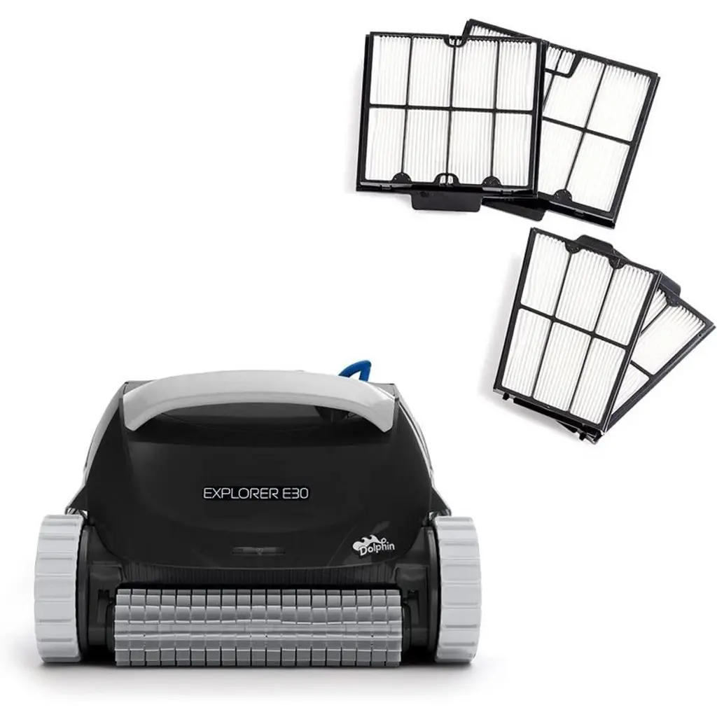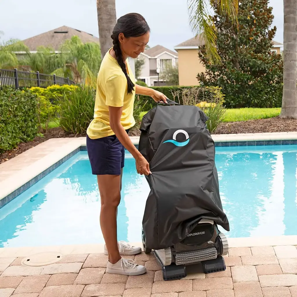 With the Dolphin Explorer E30 robotic pool vacuum cleaner, schedule your pool cleanings from anywhere with always connected Wi-Fi. Keep your pool area organized and make transporting and protecting your Dolphin robot simple with the included Universal Caddy and Classic Caddy Cover.Easily move and store your Dolphin with the included Universal Caddy. The tangle-free cable holder keeps your robot cable organized, while the Caddy makes it easy to move your Dolphin around the pool area.The durable Classic Caddy Cover fits your Dolphin like a glove. Made of thick, high-quality vinyl, the Classic Caddy Cover resists any type of weather and protects your Dolphin all year long. Protect your investment and keep dirt and moisture away from your Dolphin.The Dolphin pool cleaner includes powerful wall climbing capabilities to scrub the floor, walls, and waterline of your pool.Dolphin pool cleaners have been effortlessly cleaning the world’s pools for over 35 years, empowering pool owners with hassle-free pool maintenance solutions. With unmatched performance, durability, and cost savings, all our Dolphin products help you get back to what matters in life — enjoying your pool with family and friends.Dolphin Explorer E30 Robotic Pool Vacuum Cleaner with Wi-Fi Control — Included Universal Caddy & Classic Caddy Cover — Ideal for All Pool Types up to 50 FT in Length. Provides an ultimate clean by scrubbing your pool floor and walls. Its ideal for all pools, an ultimate clean no matter your pool shape or surface type. People love their Dolphins, the best thing you'll ever buy for your pool!