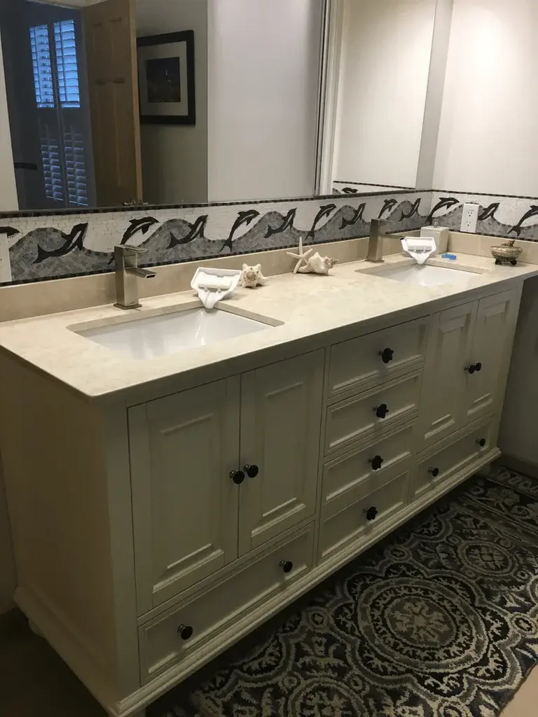 Transform your living space with the enchanting Dolphin Nautical Mosaic Art Border, an exquisite addition that seamlessly blends marine beauty with artistic charm. Crafted with meticulous attention to detail, this stunning border mosaic showcases vibrant designs inspired by the wonders of the ocean. Each tile is handcrafted from premium natural marble, ensuring your décor not only stands out but boasts a unique, one-of-a-kind touch. This Dolphin Nautical Mosaic Art Border is perfect for accentuating kitchens, bathrooms, or living room walls. The intricate dolphin motifs and flowing patterns evoke serenity and a deep connection to the sea, making it an ideal choice for nautical enthusiasts or anyone seeking to infuse coastal charm into their home. Beyond its striking visual appeal, this mosaic border is both versatile and functional—use it to create captivating focal points, frame mirrors, or elevate your tiled surfaces. The luxurious natural stone materials guarantee lasting durability, allowing you to enjoy its dazzling beauty for years to come. A highlight of this mosaic is the inclusion of Blue Macaubas, a vibrant blue quartzite known for its stunning cerulean veining and electric blue radiance. These sapphire-like depths bring an exotic, luminous brilliance to the piece, enhancing the oceanic theme with a radiant, prismatic shimmer. The silky, cool-to-the-touch texture of these premium stones adds a tactile dimension of sophistication and luxury. Let the Dolphin Nautical Mosaic Art Border elevate your interiors with an unforgettable splash of color and creativity. Whether redecorating a single room or undertaking a full renovation, this handcrafted mosaic border inspires delight and admiration. Dive into nautical elegance with this exceptional artistry and let your home reflect your passion for the ocean. Perfect for gifting or personal use, this mosaic border captures the essence of marine life and is a magnificent addition to any luxury stone décor. Make waves in your home today!