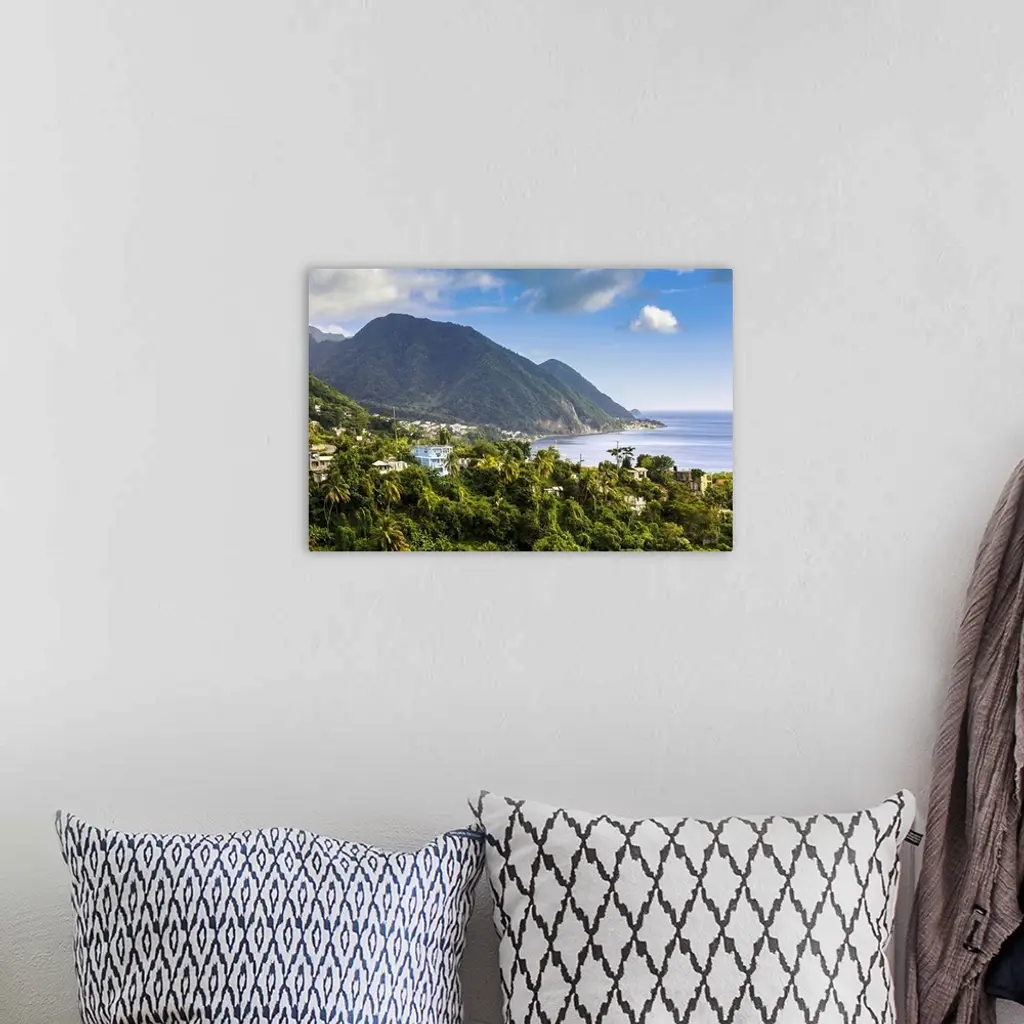 Dominica, Sibouli, View Of Pointe Guignard With Soufriere Bay And Mountains