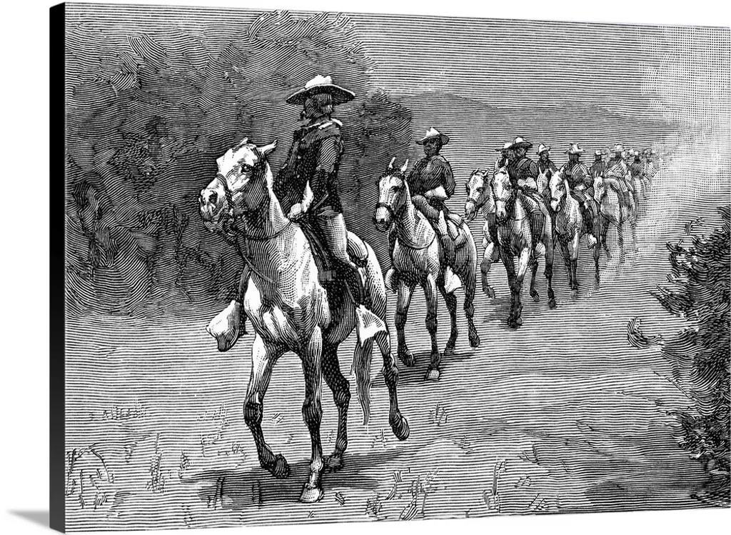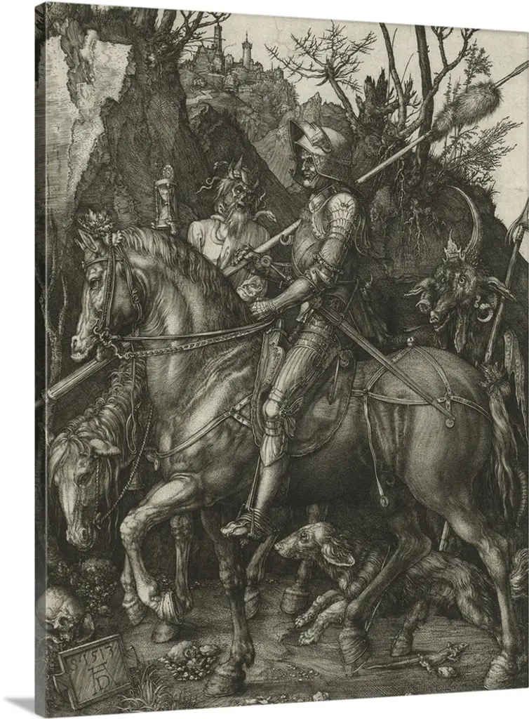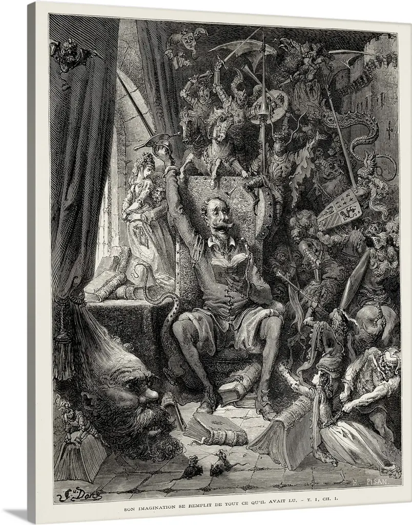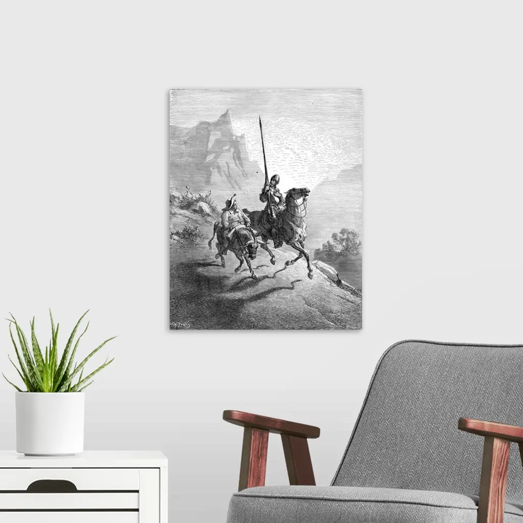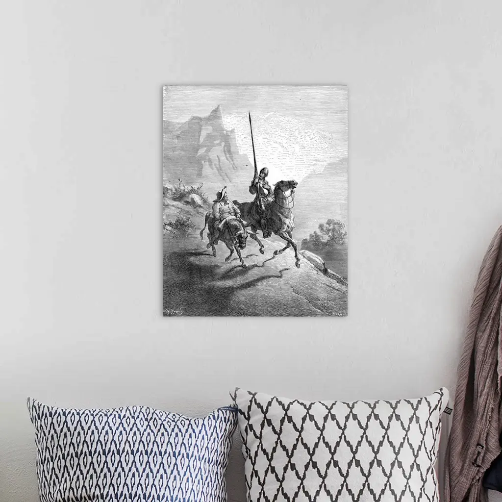 Don Quixote and Sancho Panza setting out at dawn in search of adventure: wood engraving after Gustave Dor?.