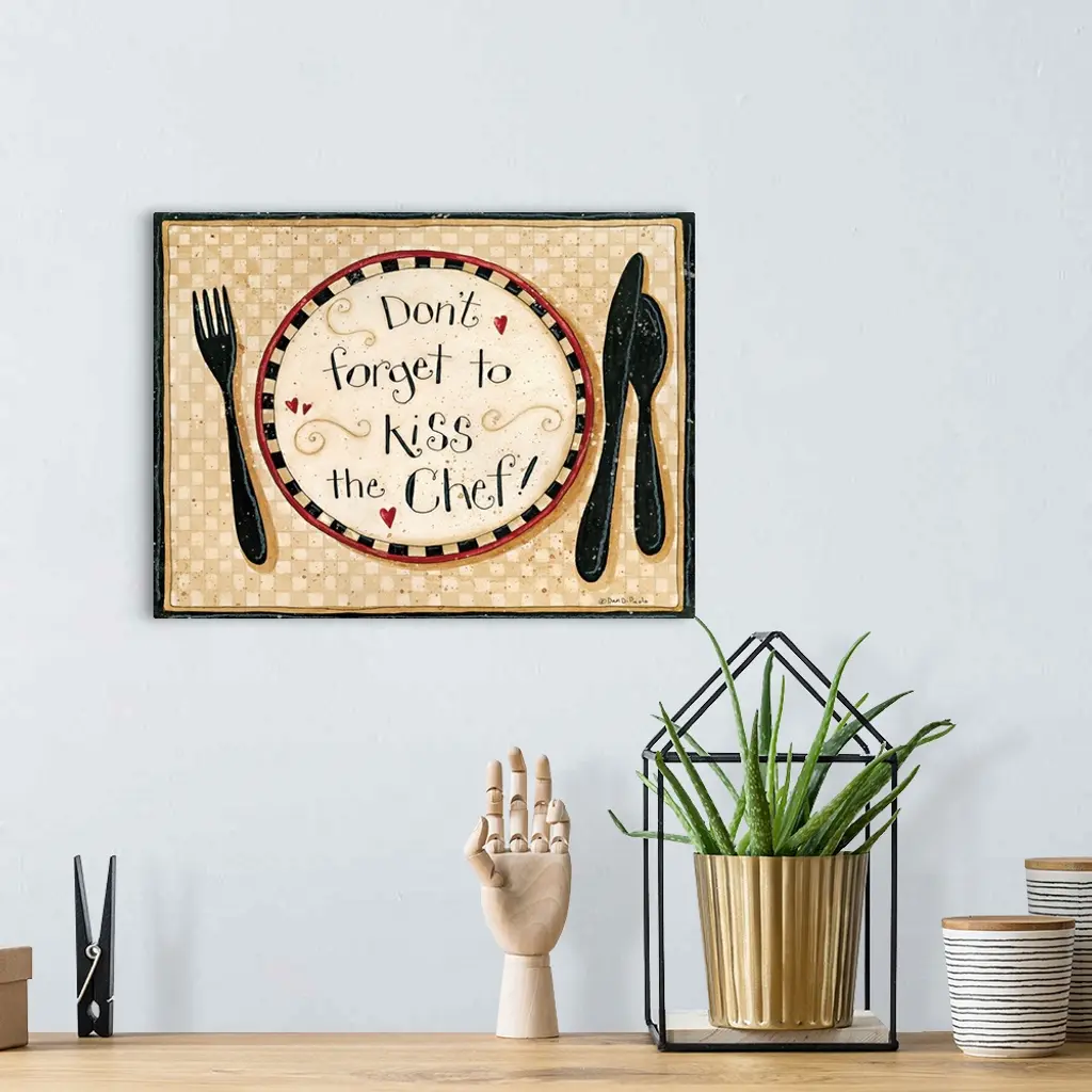 Donot Forget To Kiss The Chef wall art for home and office decor. Discover canvas art prints, photos, mural, big canvas art and framed wall art in GreatBigCanvas.com's varied collections.