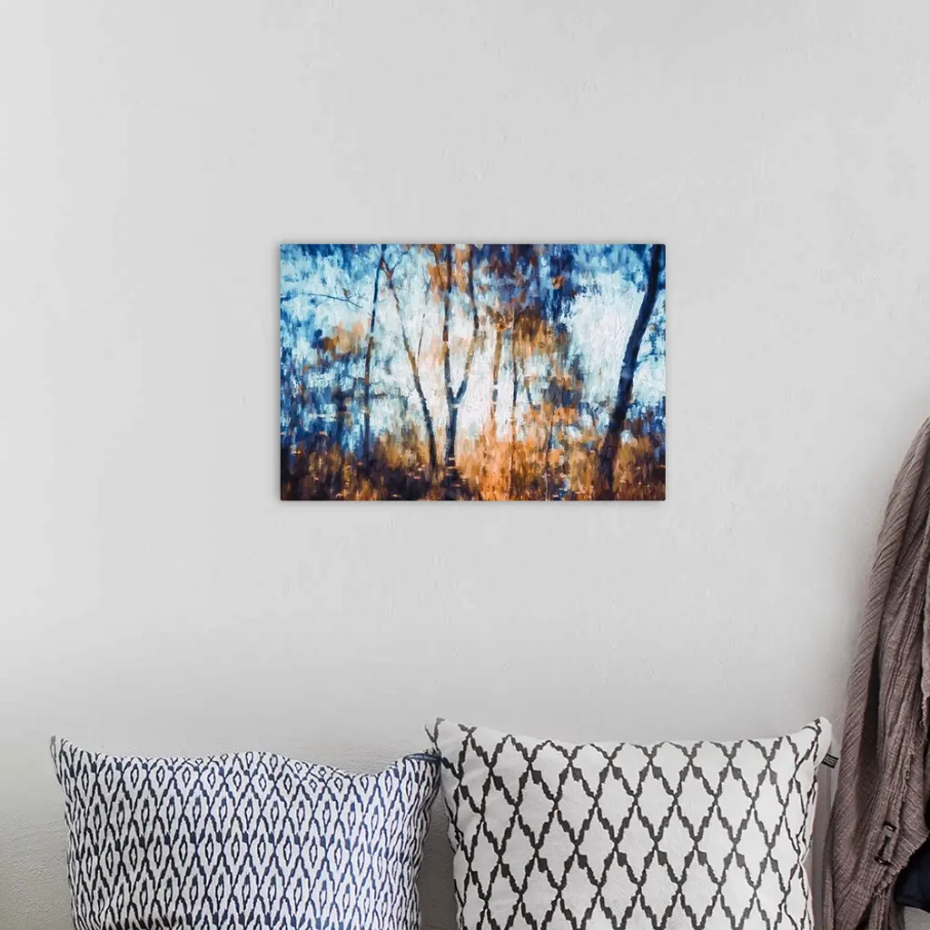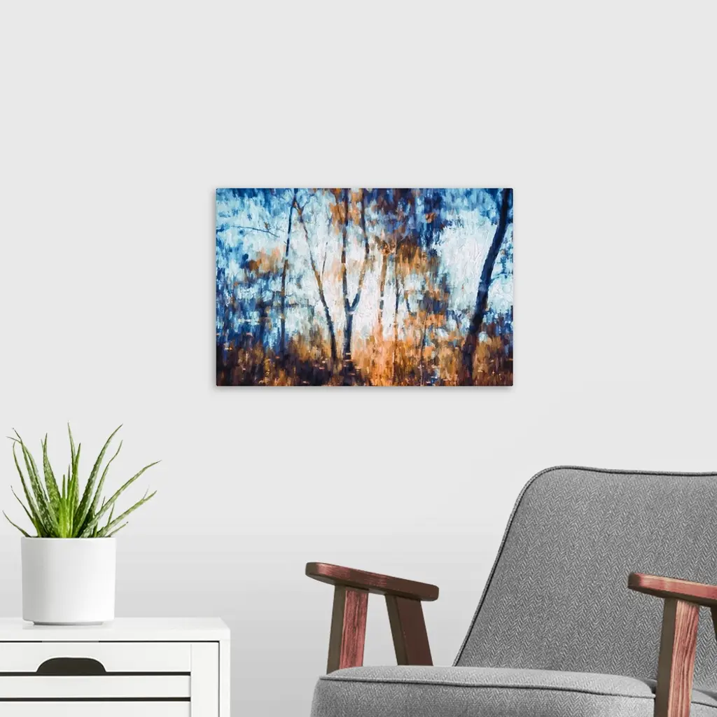 Photo Expressionism -Trees reflected in a lake in the fall.