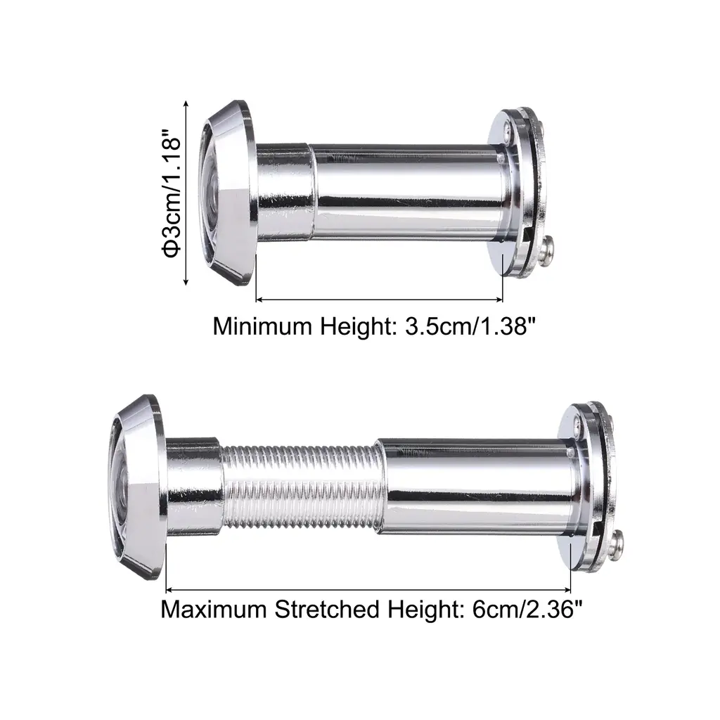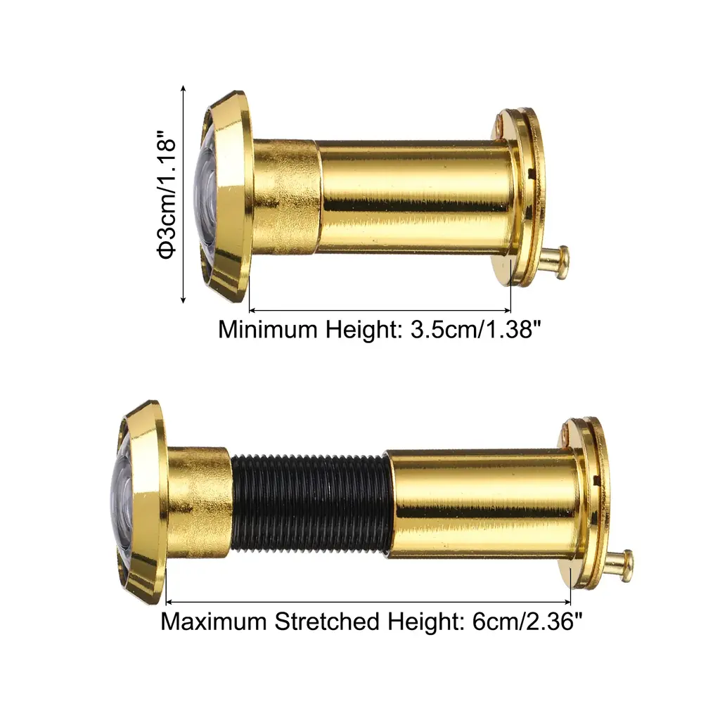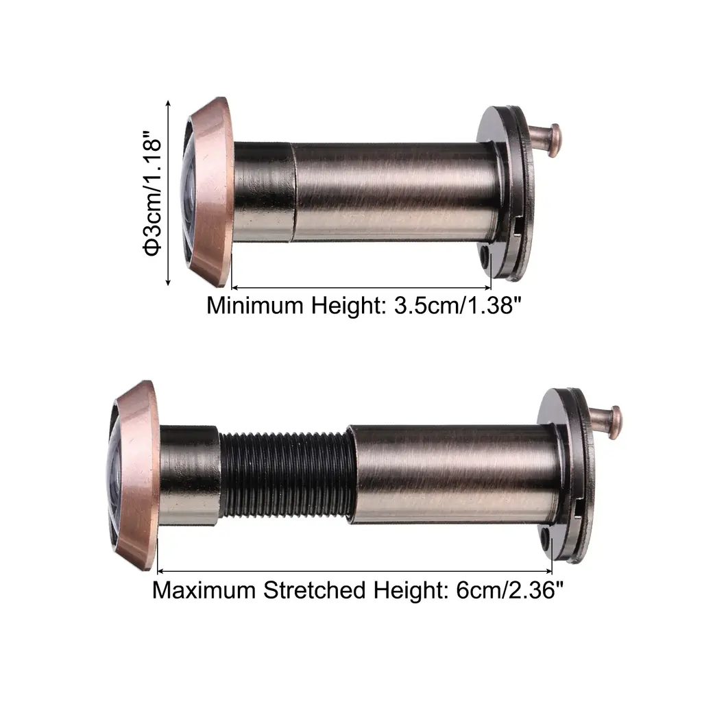 Stylish designed door viewer peepholes consisting of HD lens provides 200 degree view area and crystal clear panoramic view. It is an essential security addition for homes, offices and hotels, suitable for homes, apartments, hotels and any situation where you need to check the situation outside the door before opening it.SpecificationColor: Red BrushedMaterial: Zinc AlloyDiameter Hole: 16-21mm/0.63"-0.83"Door Thickness: 35-60mm/1.38"-2.36"Minimum Height: 3.5cm/1.38", Maximum Stretched Height: 6cm/2.36"Door Viewer Diameter: 1.6cm/ 5/8"WxL: 3x3cm/1.18x1.18"Drill Depth: 16mm/0.63", Drill Bit Size: 70x16mm/2.76"x0.63"Packing List: 1Pcs Door Viewer Peephole, 1Pcs M35 High-Speed Steel Drill Bit with Spring, 1Pcs Hex Wrench, 1Pcs Storage BoxAdvantageThe door peephole viewer is made of durable zinc alloy, and the stylish modern design matches your existing hardware and decoration, blending perfectly with a variety of doors.The door viewer is designed with a 360-degree rotating privacy cover, which can take good care of the safety of you and your family.InstructionComes with a 16 mm (5/8 inch) drill bit, which is convenient for drilling and installing the Door peephole viewer.NOTE: Know the thickness of the door and the diameter of the hole. That will make it easy to choose and installed.