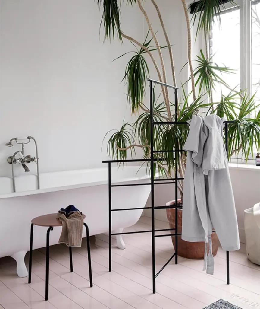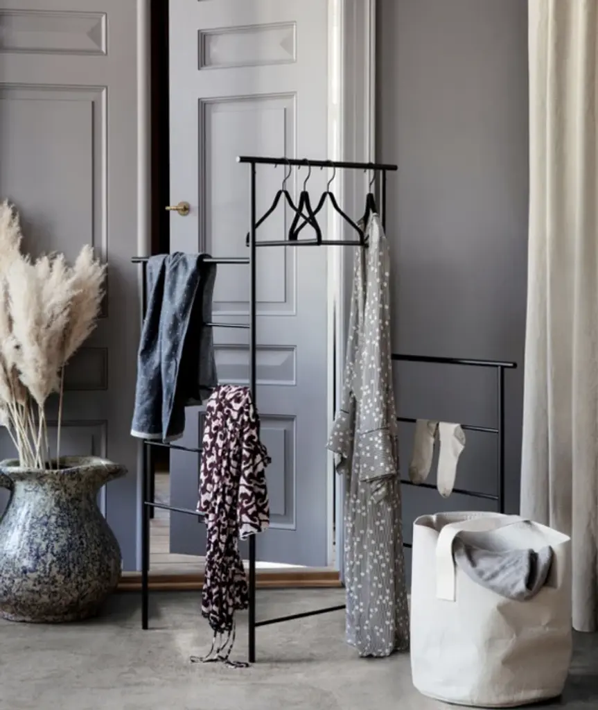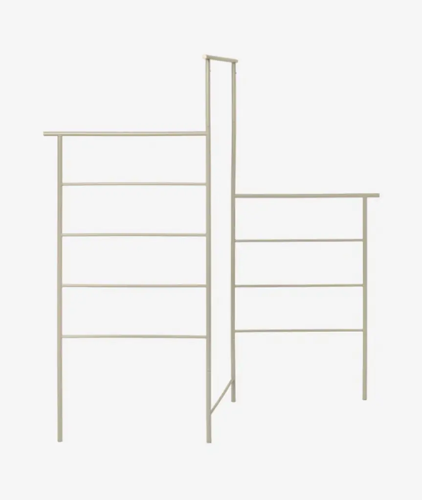 Consisting of three panels of sleek, powder-coated metal, the Dora Clothes Stand forms a minimal storage solution with a hint of Japanese aesthetic. Use it as a stylish drying rack, which can be folded so that it doesn't take up a lot of space when stored. Or use it as a simple room divider that lets you display your favorite garments while creating a beautiful sense of space in larger rooms.
