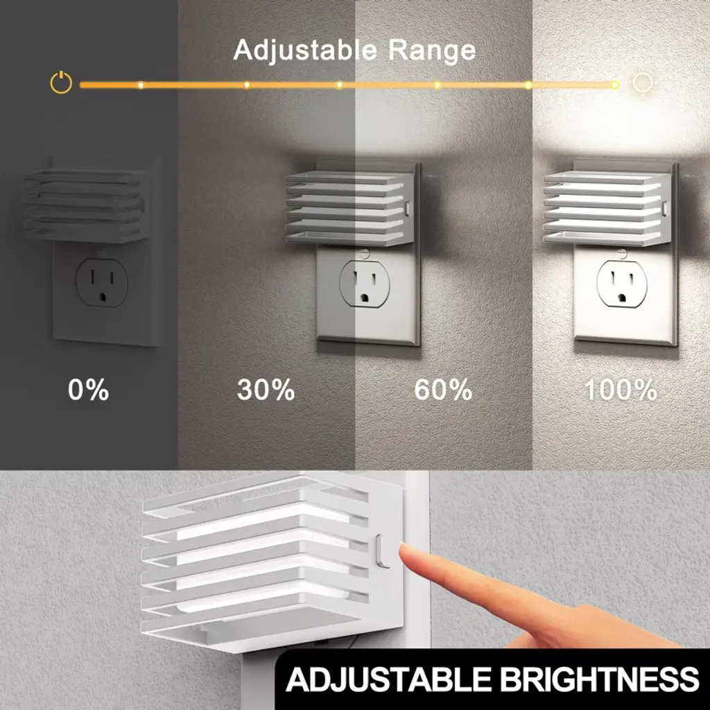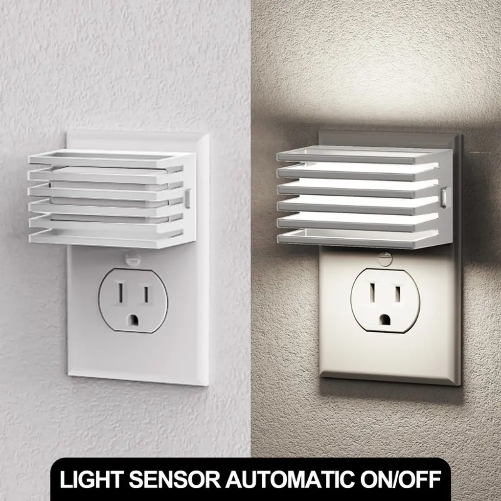 This 2-pack of 1W plug-in night lights features a white fence-style design with top and bottom illumination, perfect for bedrooms, hallways, or nurseries. Each night light emits soft 5000K white light, providing comfortable visibility during nighttime. The built-in light sensor and three-level button dimming ensure customizable brightness while remembering settings after power off.