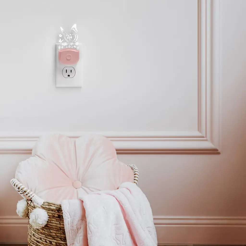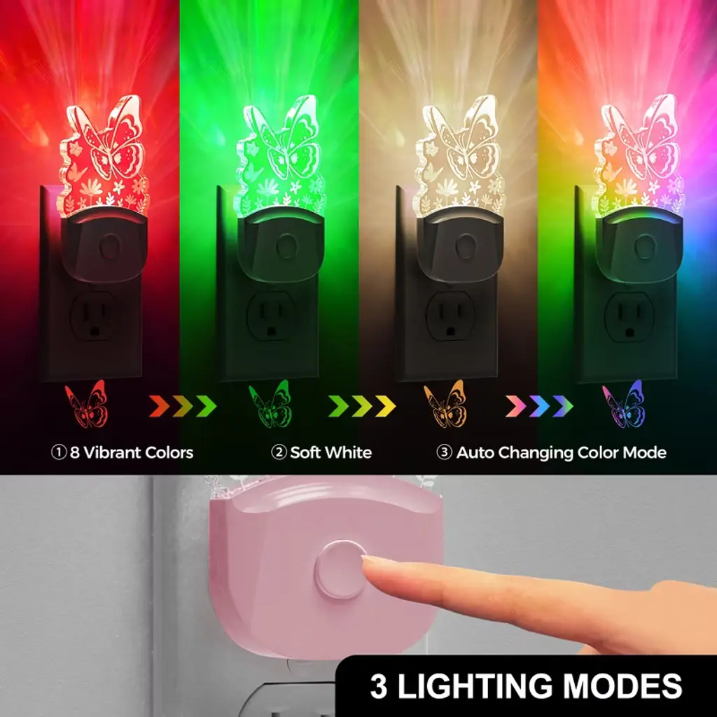 Doresshop 0.5w Plug-in Light Sensor Night Light, Butterfly Design, Pink Acrylic Housing With Dual Plug, 3000k Warm White + Rgb Gradient