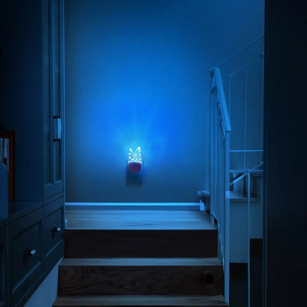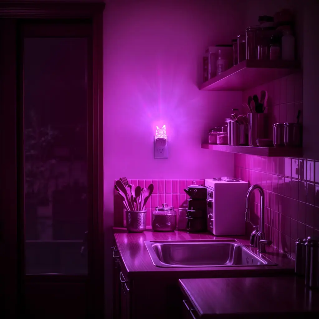 This 0.5W plug-in night light features a charming butterfly design with a pink acrylic housing and a dual plug, ideal for bedrooms, nurseries, or decorative areas. The light offers 3000K warm white and full RGB gradient options, allowing users to create soft or vibrant illumination according to their mood. Users can adjust colors via button control, long press for 2 seconds to turn off, and restart to retain color memory; note that the light sensor does not operate when the light is off.