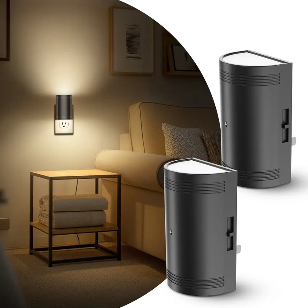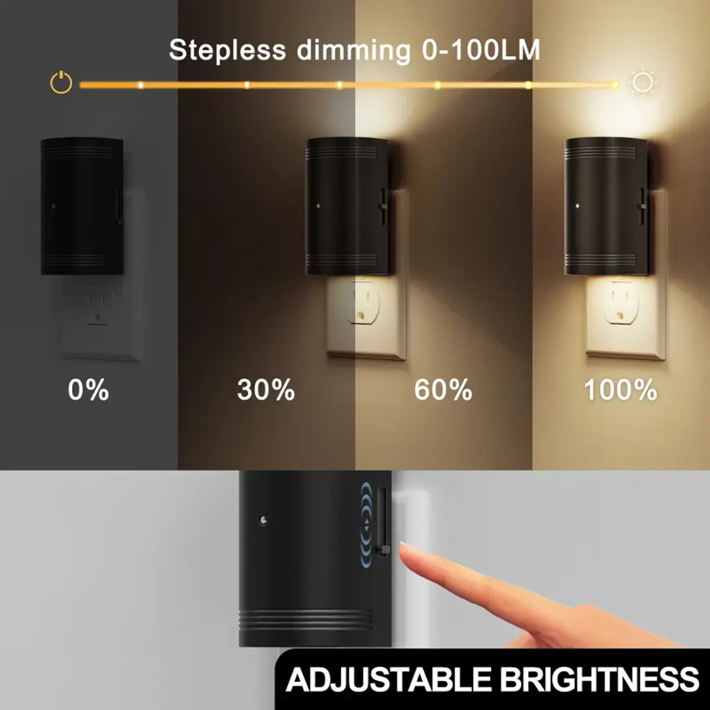 Doresshop 1-light Black Dimmable Plug-in Night Lights With Dusk To Dawn Sensor, 3000k Warm White Glow(2-pack)