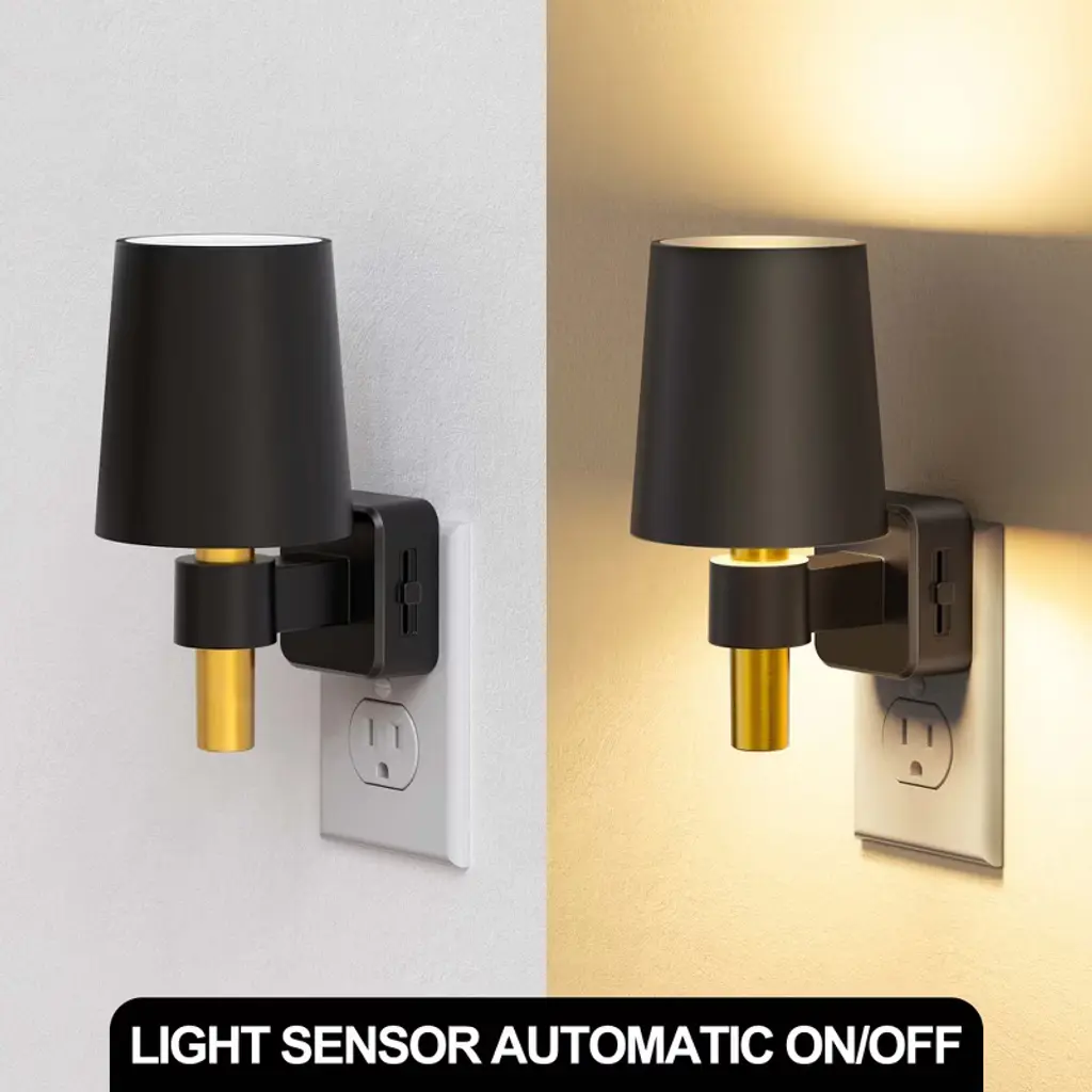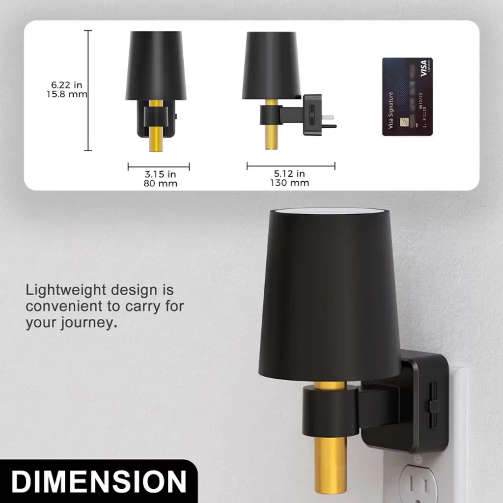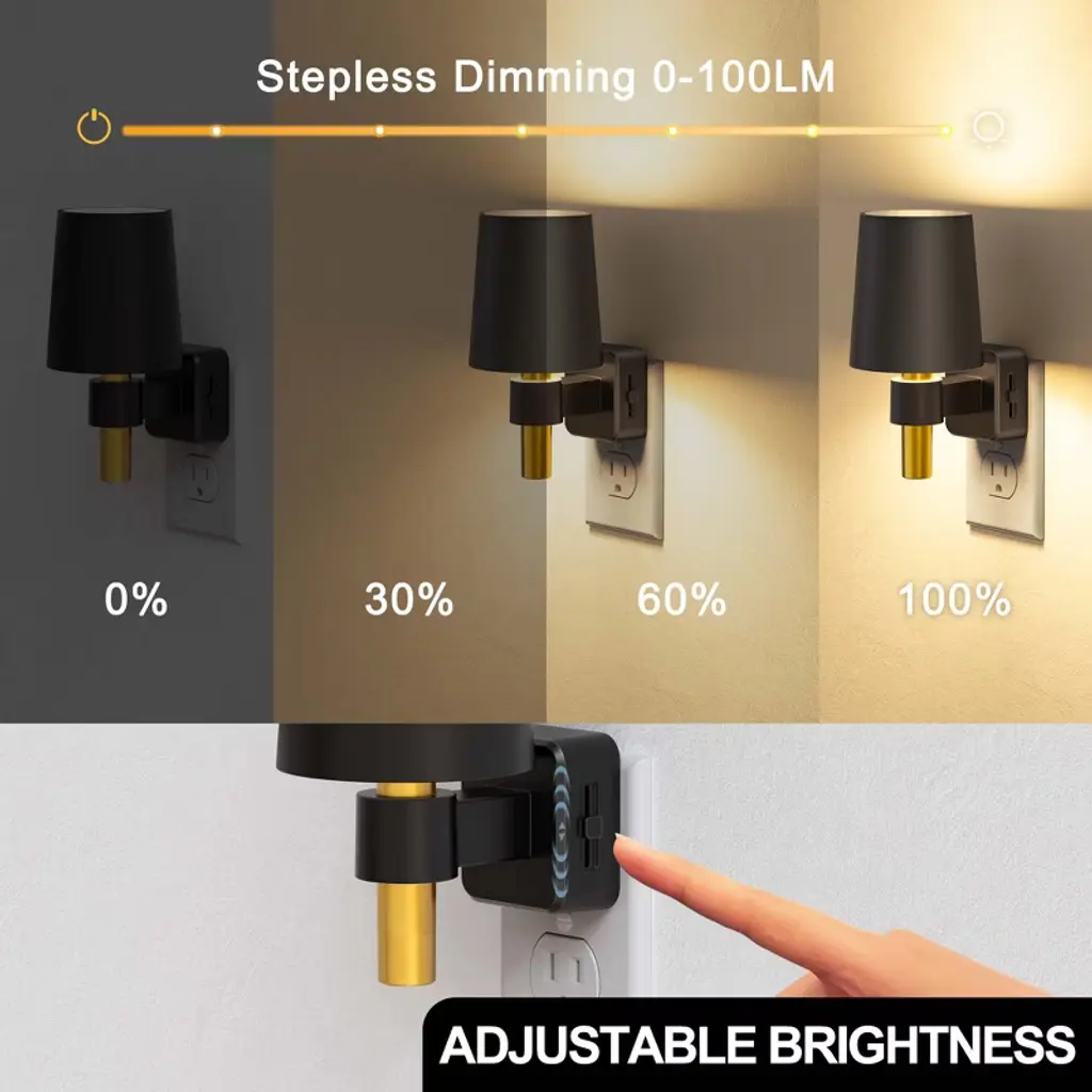 Doresshop 1W Plug-in Night Light With Round Shade, Up/down Glow Wall-mimic Design, Black, Slide Dimmer, 2700k Warm Light