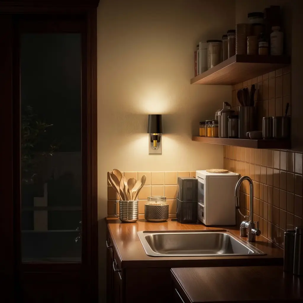 This 1W plug-in night light features a sleek painted plastic dome design, emitting warm amber light for a cozy ambiance. The slide dimmer allows smooth brightness adjustment from 0% to 100%, while the black and chrome finish adds a modern decorative touch. Perfect for hallways, bedrooms, or accent lighting in living spaces.