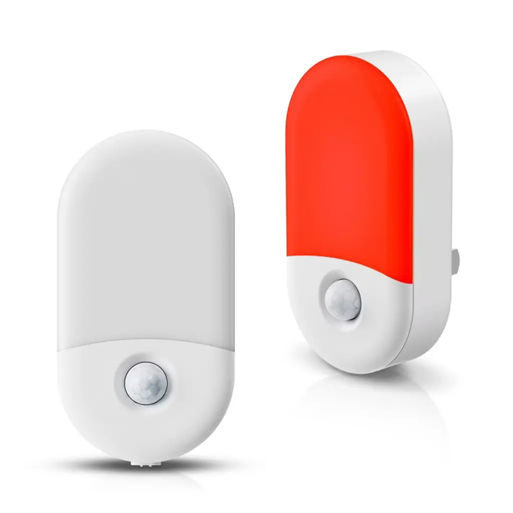 Doresshop 2-pack 0.6w Plug-in Oval Motion Sensor Night Lights, White Finish, Modern Accent For Bedroom Or Hallway