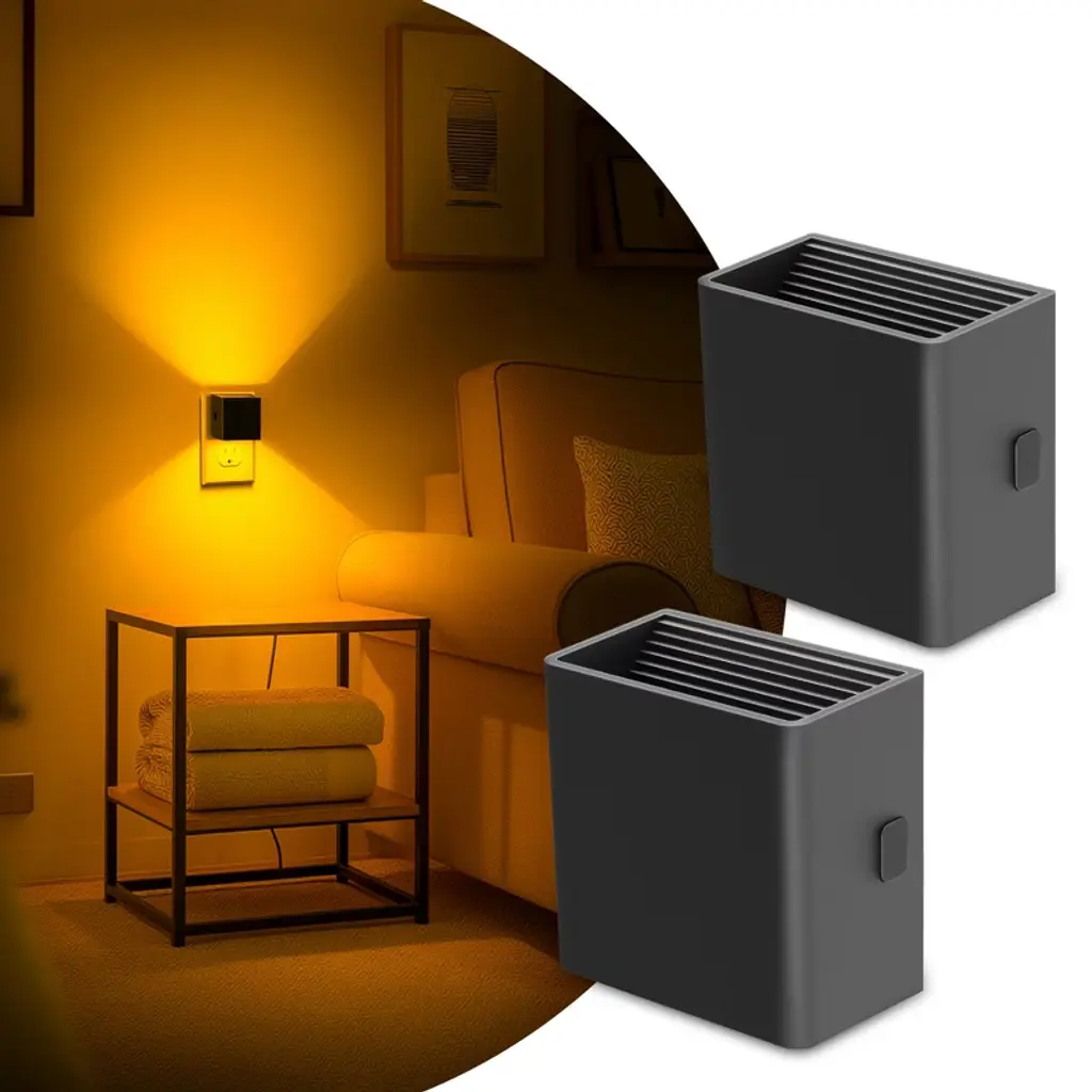 This 2-pack of 1W plug-in night lights features a square wall design with amber light, providing both upward and downward illumination for bedrooms, hallways, or living spaces. The night lights emit warm 2000K amber light, creating a cozy and welcoming atmosphere. Each unit supports three-level button dimming and retains brightness memory after power off, delivering customizable and convenient lighting.