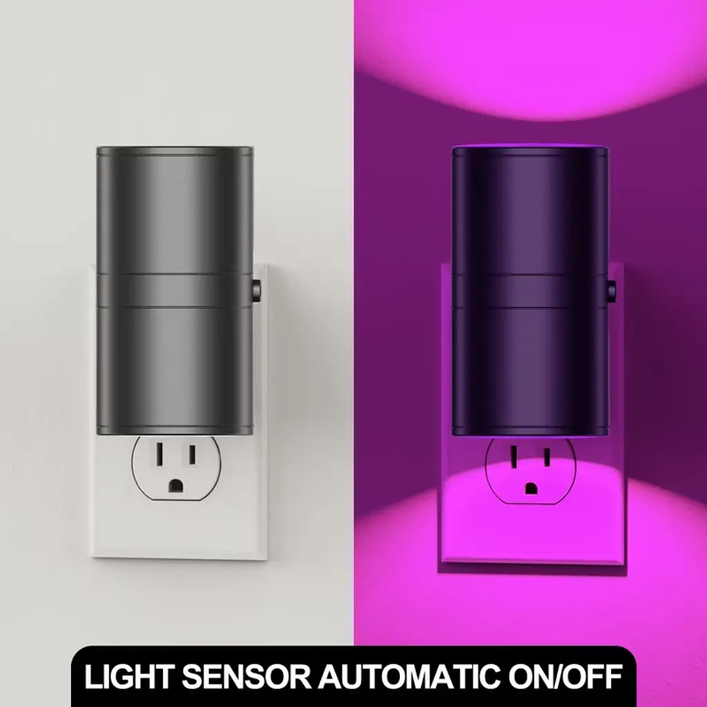 Doresshop 2-pack 1W Plug-in Light Sensor Cylinder Night Lights With Purple Glow, Black Housing, Dimmable