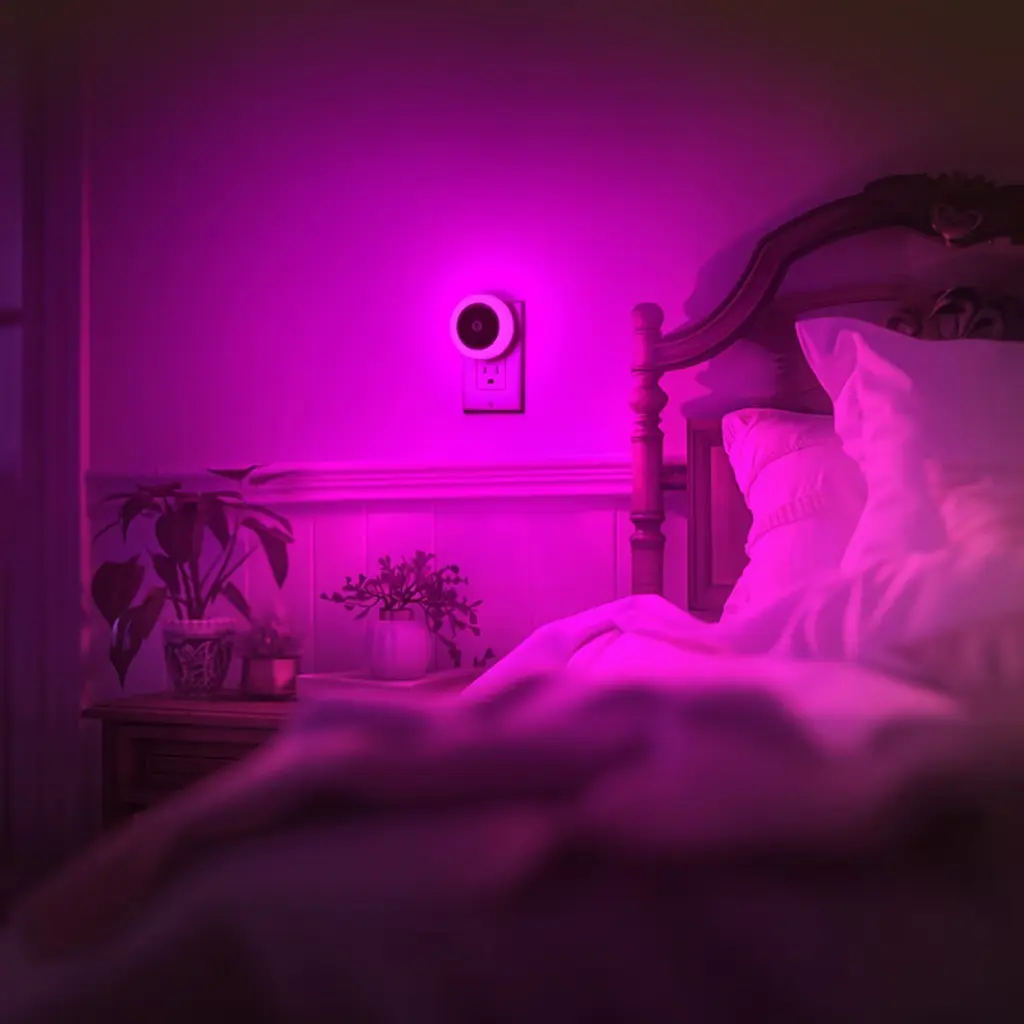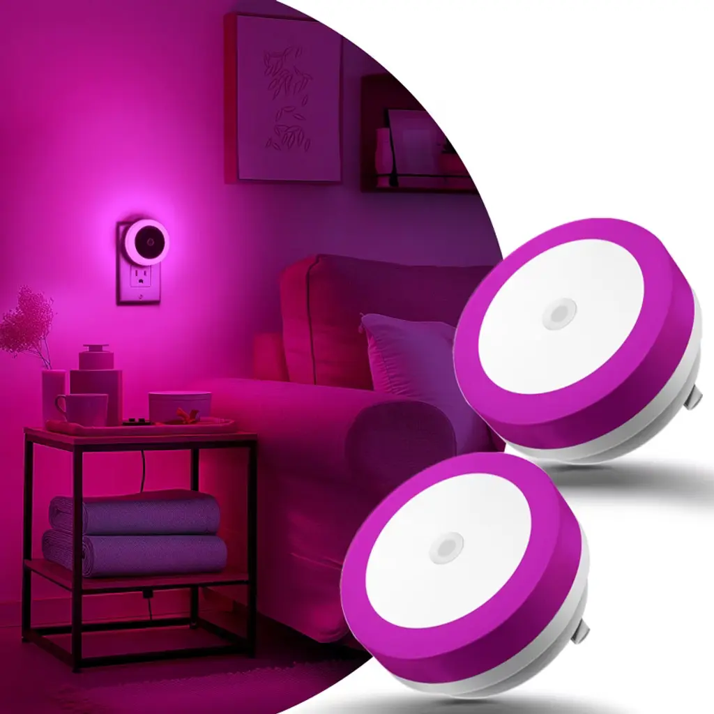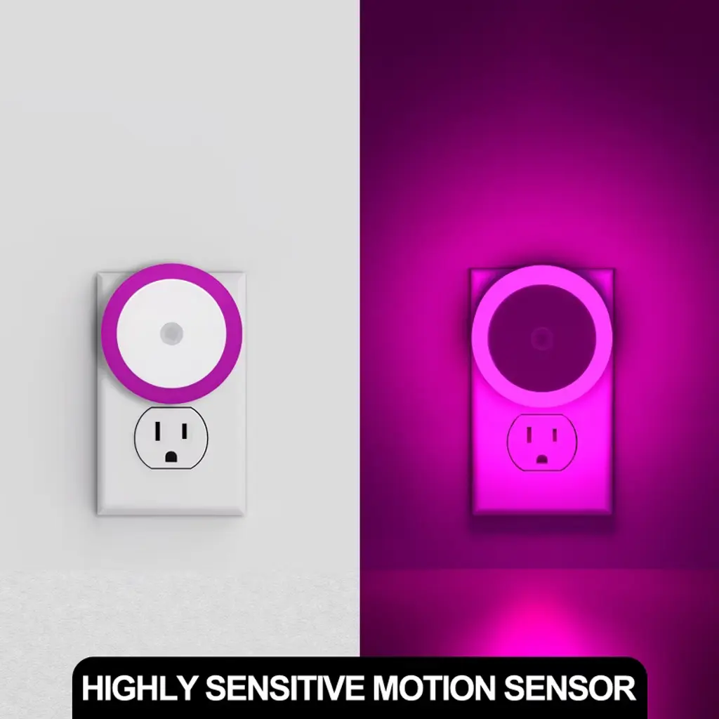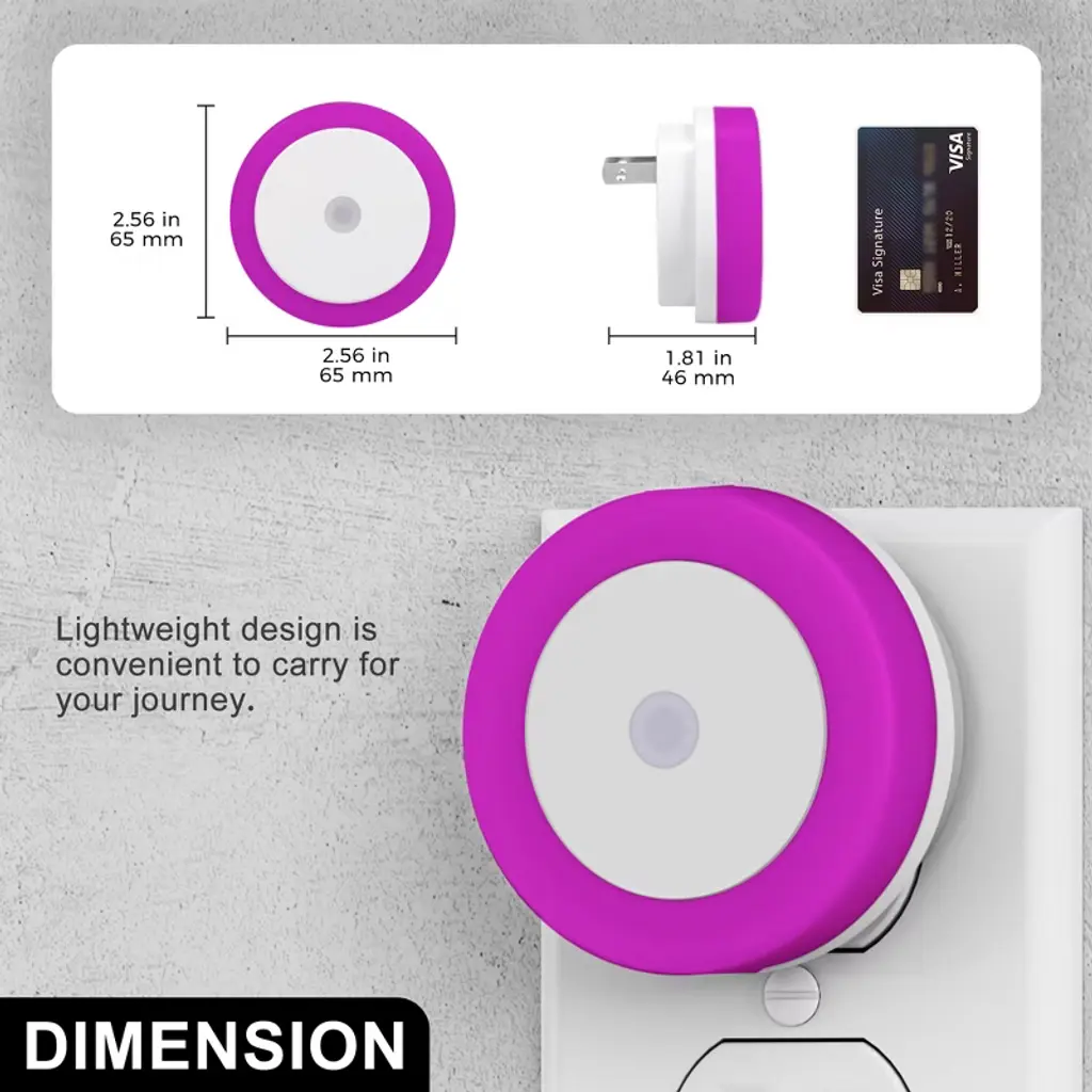 This 4-pack of plug-in night lights features a white housing with purple LED light and matching purple covers, perfect for bedrooms, kids¡¯ rooms, or ambient lighting. Each light operates at 0.6W for energy-efficient, soft illumination that adds a unique glow to any space. The plug-in Light sensor automatically turns the lights on in darkness and off during daylight for convenient, hands-free operation.