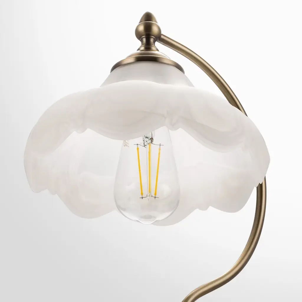 Upgrade your table lamp with this frosted white flower-shaped glass shade replacement. It provides soft and even light diffusion while adding a charming decorative touch. Crafted from durable glass, this shade is easy to install and compatible with most standard table lamps, perfect for refreshing your lighting d¨¦cor.