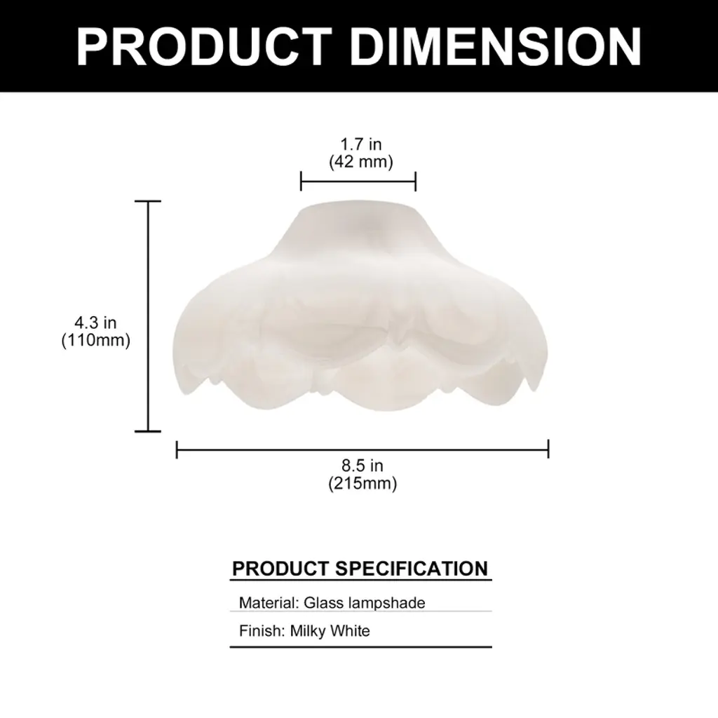 Doresshop Milk White Glass Flower Lampshade Replacement 1.7 Fitter Width For Traditional Lighting Fixtures, 8.5 In.