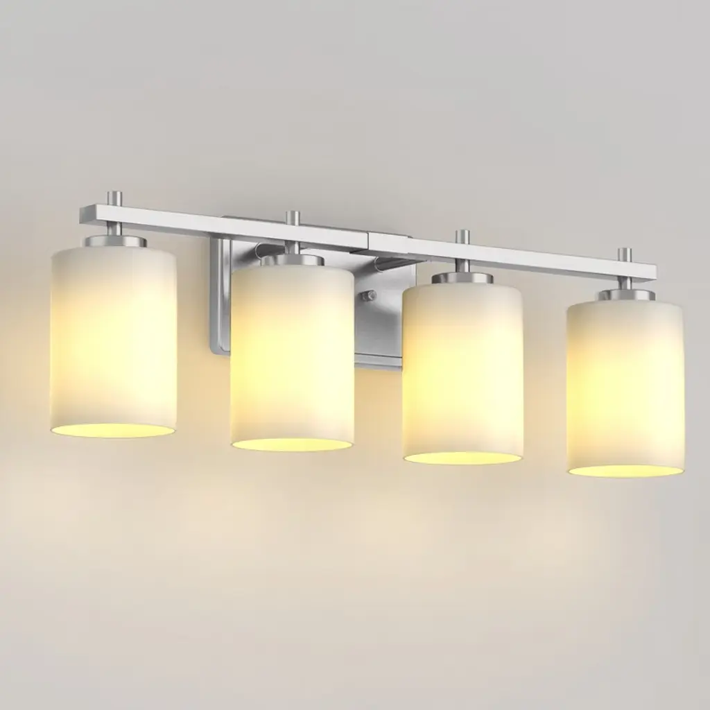 Doresshop Modern 4-light Vanity Wall Lamp, Sand Nickel Finish With Opal Glass Shade, Perfect For Bathroom, Bedroom