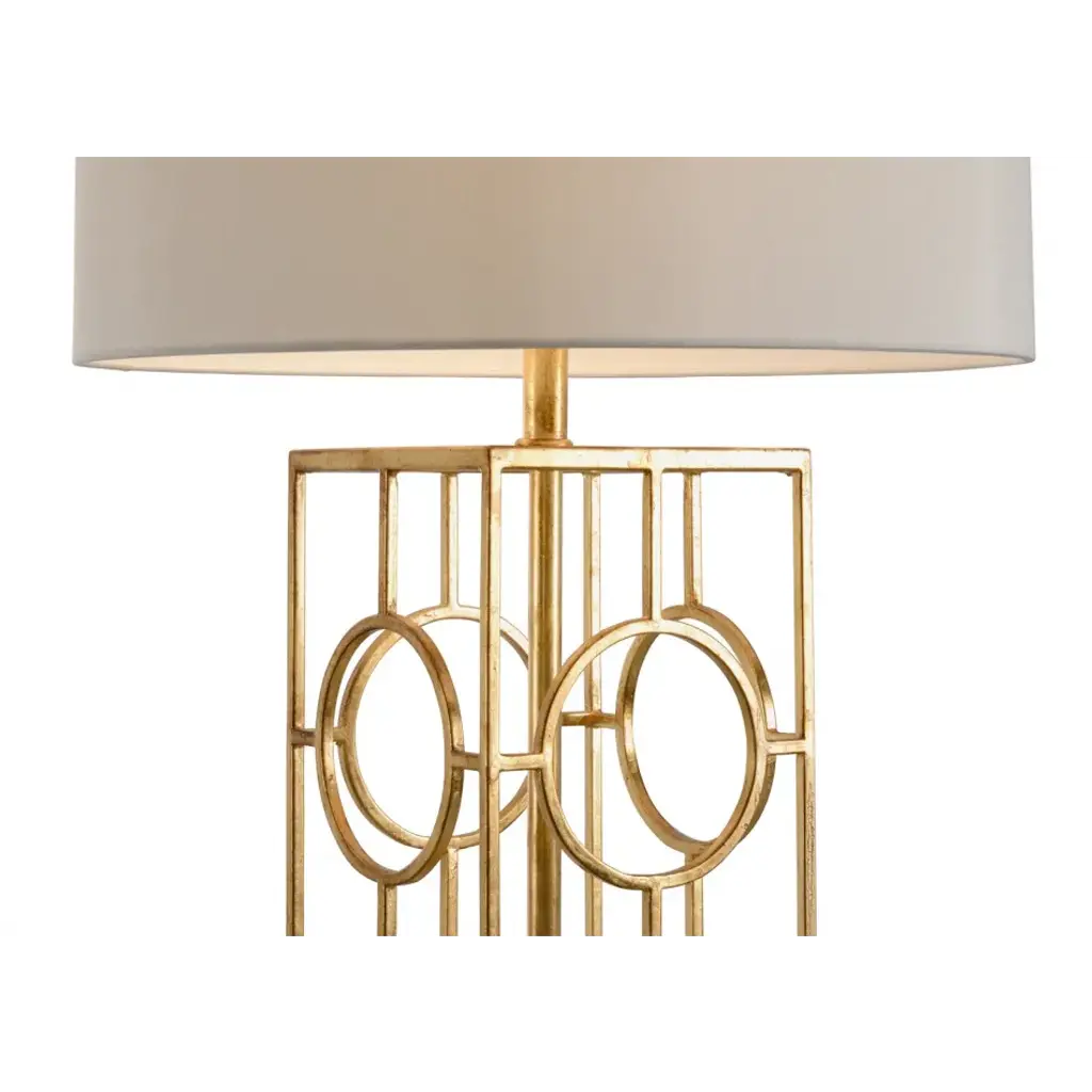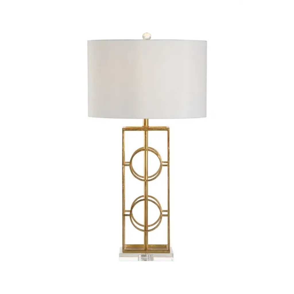 GEOMETRIC DESIGN LAMP IN GOLD LEAF ON A CRYSTAL BASE.