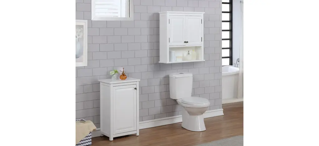 The Dorset Wall-Mounted Open Shelf Storage Cabinet w/ Doors provides storage and display to your space, designed for both style and functionality. Store toiletries, stacked washcloths, rolled towels, or anything you need to keep organized.