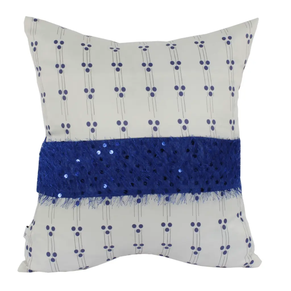 Dotted Satine cushion has shiny black strap pass in the middle. The cushion closes by zip. The shiny and smooth touch cushion adds glow to your living area. The cushion comes with its inner cushion pad
