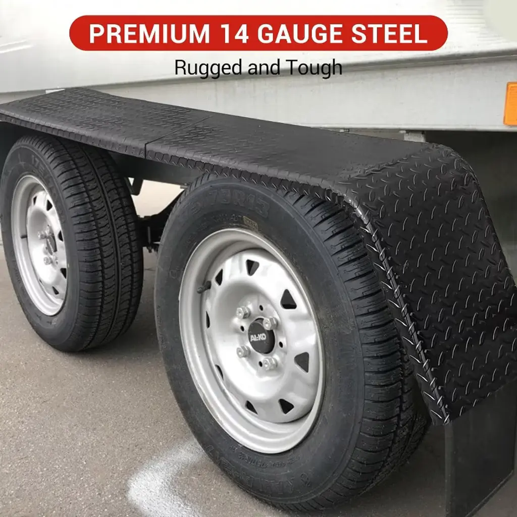 Picture this: You're hauling your prized car to a show when a gravel road sprays rocks at your trailer tires. With our heavy-duty steel fenders, those dangerous projectiles get deflected before they can damage your investment. Built from thick-gauge steel with a tough powder coat finish, these fenders take whatever the road throws at them while resisting rust and corrosion year after year. The smart teardrop design does more than just look good on your trailer - the smooth curves actually improve airflow to reduce drag at highway speeds. Meanwhile, the extended coverage keeps mud, salt, and debris off your tires and wheel bearings, saving you money on premature wear and tear. Whether you're transporting cars, equipment, or livestock, these fenders adapt easily to any tandem axle setup between 13-15" wheels.